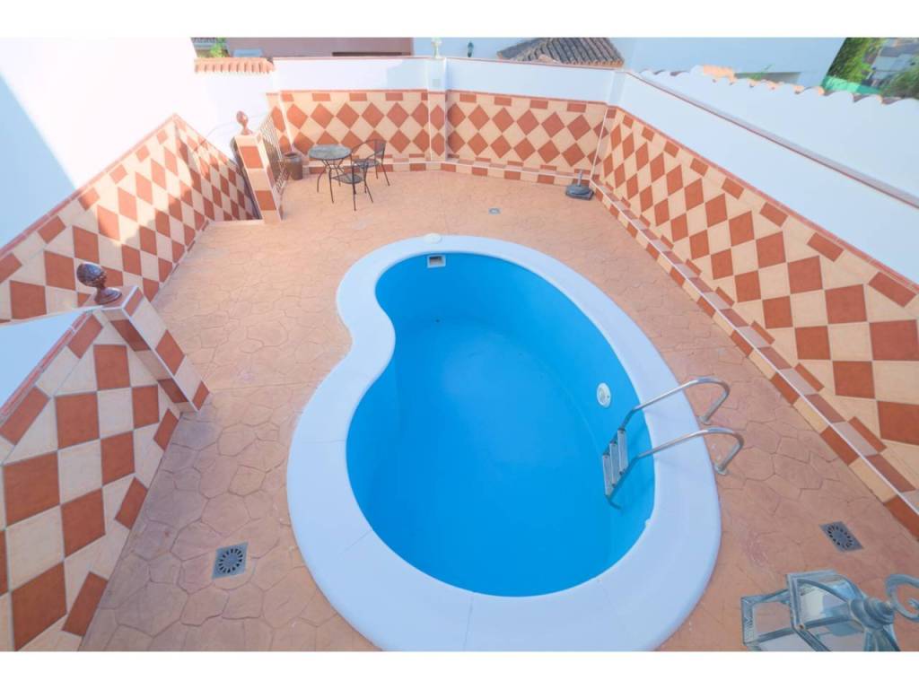 Chalet en esquina en Viña Málaga, con aparcamiento y piscina privados. En la planta de entrada tenemos un baño, cocina grande y el salón con A/A y chimenea que actualmente se está usando como dormitorio. En la planta de arriba 3 dormitorios y un baño, todo exterior. Y en la planta -1, sótano diáfano tenemos un salón con una segunda cocina totalmente amueblada y equipada, con una espaciosa despensa.