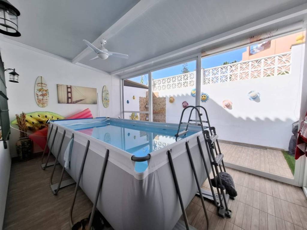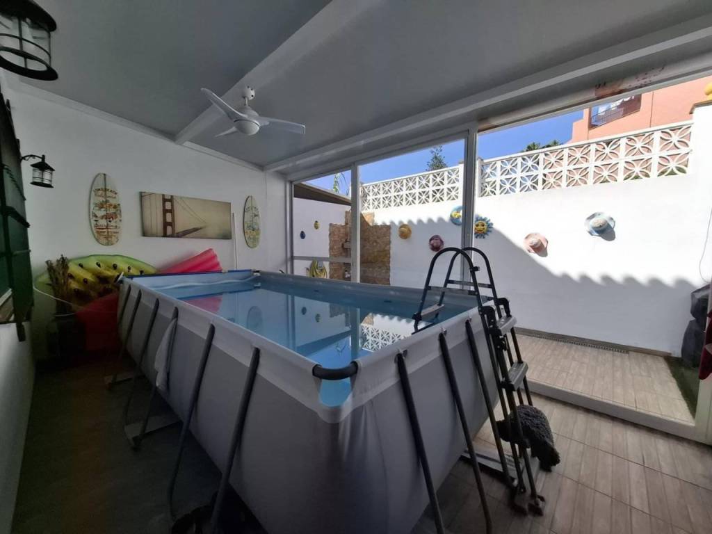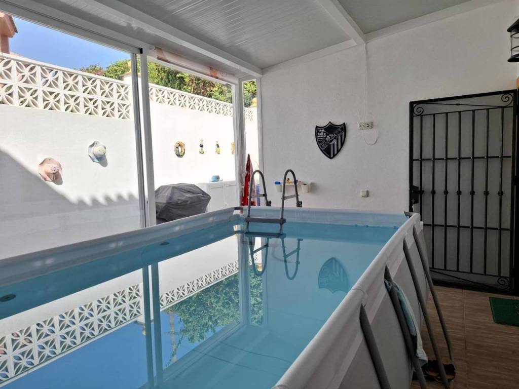Porche con ducha, zona de solárium y espacio para piscina desmontable o zona relax