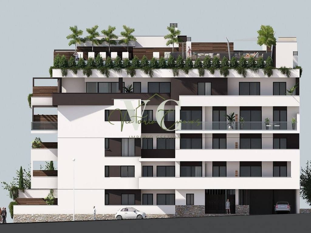 El residencial se compone de plantas bajas con amplias terrazas ajardinadas, 1a y 2a plantas con grandes y espaciosas terrazas de 3 metros de anchura y una 3a planta donde la luz inunda cada una de las vivienda con terrazas de cristal y techos engalonados de madera.