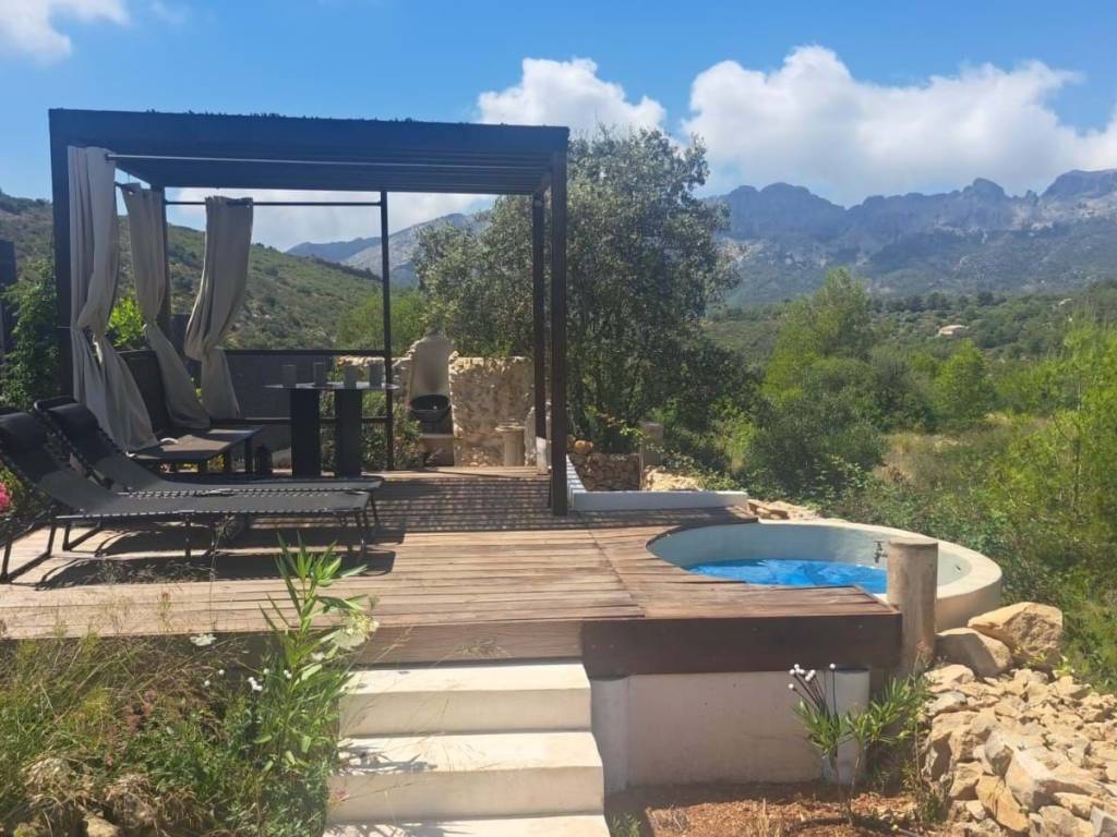 En el exterior, encontrarás un encantador jardín con una bonita terraza, que incluye una bañera exterior con sistema de calentamiento, perfecta para relajarse durante las tardes de invierno mientras se disfrutan de las impresionantes vistas a la Sierra de Bèrnia.