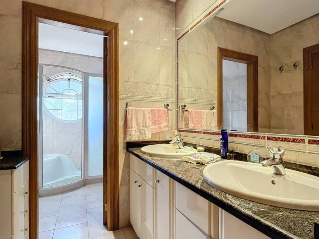 Magnífico chalet con gran parcela sito en una ubicación privilegiada en Benidorm, cercano a todos los servicios. La propiedad cuenta con una superficie construida de unos 500 metros, además de, unos 10.000 metros pertenecientes a la parcela. La vivienda se distribuye en 3 plantas. La planta baja consta de hall de entrada, una sala auxiliar, un amplio y luminoso salón comedor con chimenea, este cuenta con acceso directo a toda la zona exterior. En la misma planta se encuentra una amplia cocina con galería la cual está completamente amueblada y equipada, además de 1 habitación y 1 baño completo. En la planta superior consta de 3 suites, todas cuenta con baño privado, desde la habitación principal podremos acceder a una terraza de grandes dimensiones, desde la cual podremos disfrutar de una amplias vistas panorámicas. La planta sótano cuenta con un espacio diáfano, además de, 1 sala de máquinas y 1 bodega. Nos permitirá poder albergar un gran número de pertenencias, además de, 3 vehículos. El equipamiento de la casa es muy extenso, cuenta con chimenea, ventanas de doble acristalamiento, rejas de seguridad, contraventanas, acondicionado, calefacción central mediante radiadores, armarios empotrados, sistema de riego automático, puerta de garaje eléctrica, entre otros. En la zona exterior nos podremos encontrar un jardin de ensueño, una coqueta barbacoa, zona de cultivo, además de, una magnífica piscina rodeada de una muy bonita y cuidada zona ajardinada.