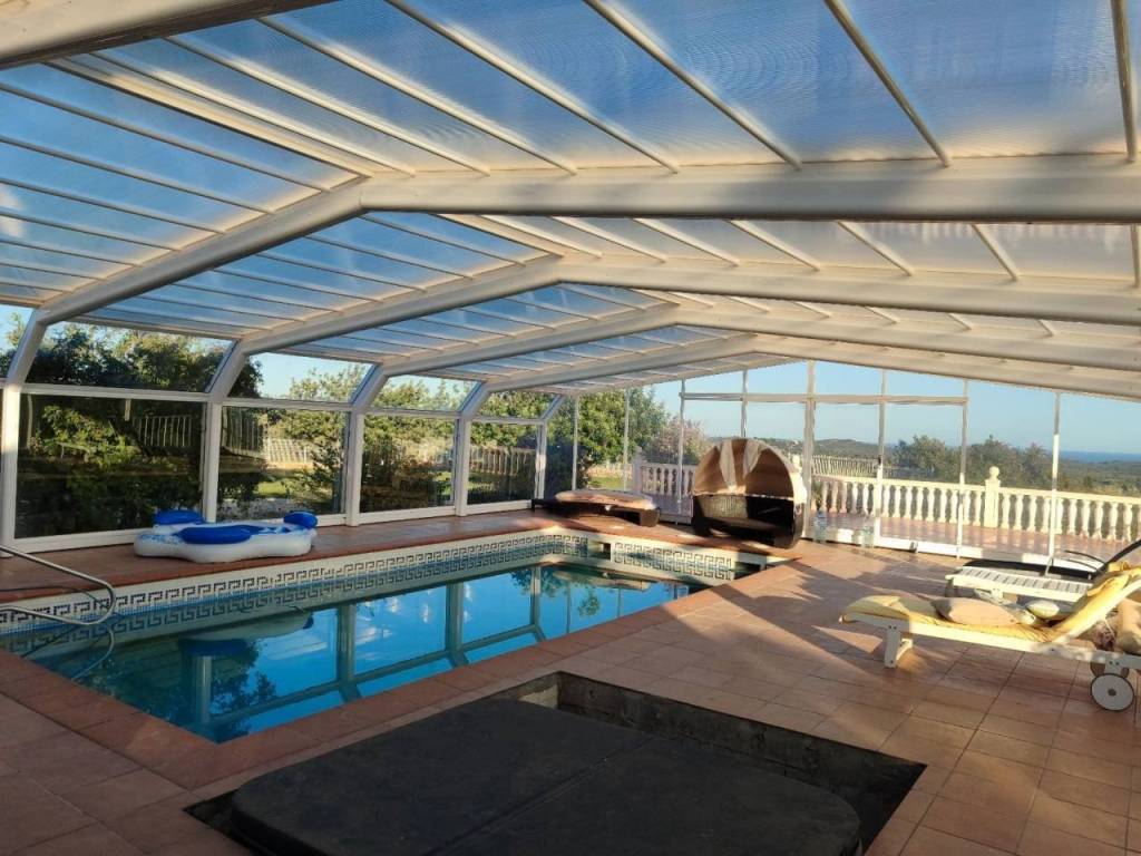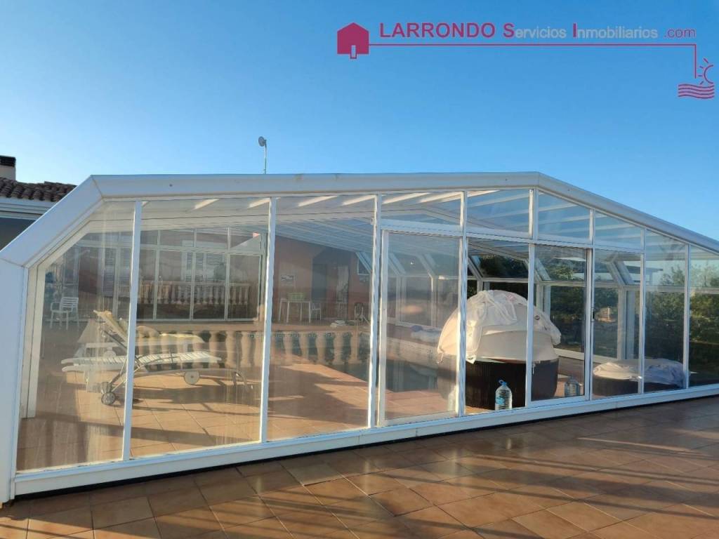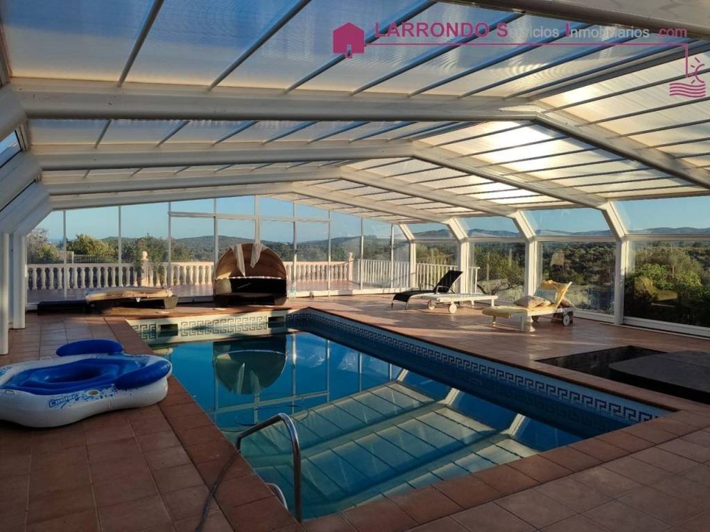 La piscina climatizada de 8 X 4 m2 y 1.7 de profundidad con vistas increíbles y con cerramiento movible, ideal para relajarte en cualquier época del año. Tiene un hueco para la colocación del jacuzzi.