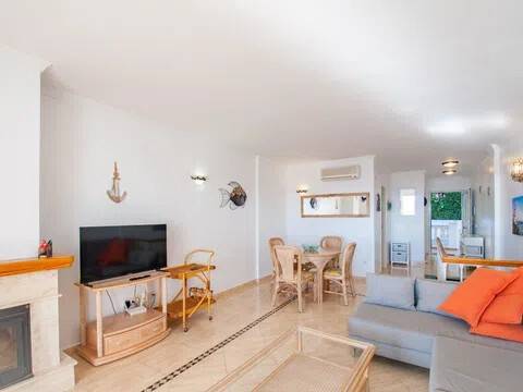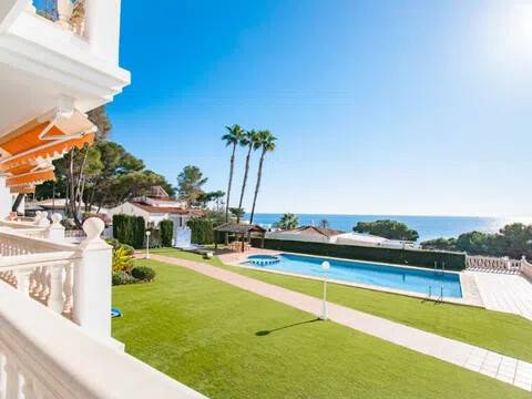 Apartamento en venta en Playetes, Moraira, ubicado a solo 50 metros de la playa. La propiedad incluye dos dormitorios, un baño, un luminoso salón con chimenea de leña y una cocina completamente equipada. Hay una amplia terraza con vistas al mar. El apartamento cuenta con aire acondicionado, ventanas de doble acristalamiento, persianas enrollables y acceso en ascensor. Los residentes tienen acceso a una piscina comunitaria. La distribución maximiza la luz natural y las vistas, adecuada como casa de vacaciones o residencia permanente.