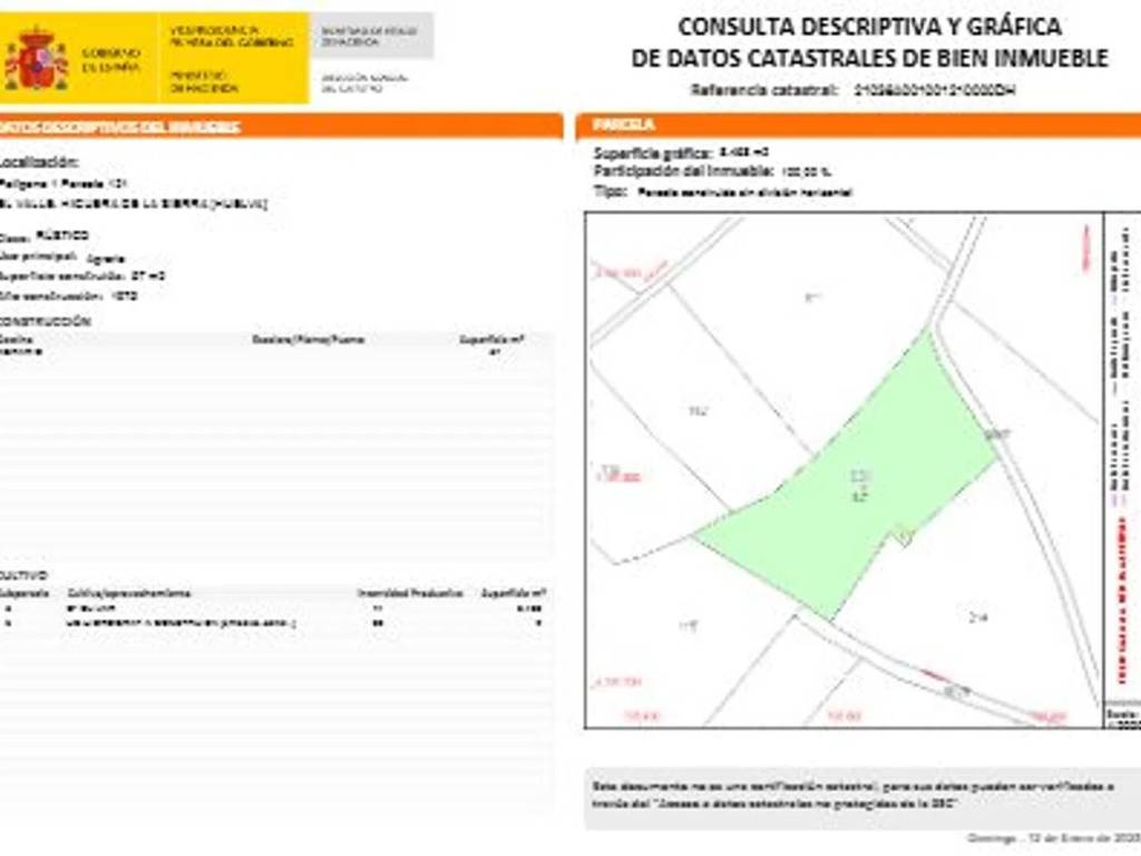 Cuenta con una construcción de unos 72 m2 según catastro para rehabilitar y un pozo artesiano antiguo. Casi todo el arbolado es olivar, con algún frutal y encinas.
