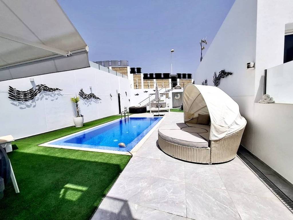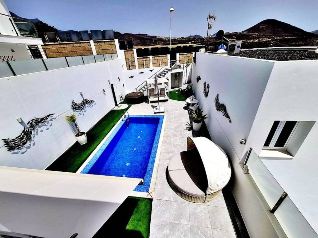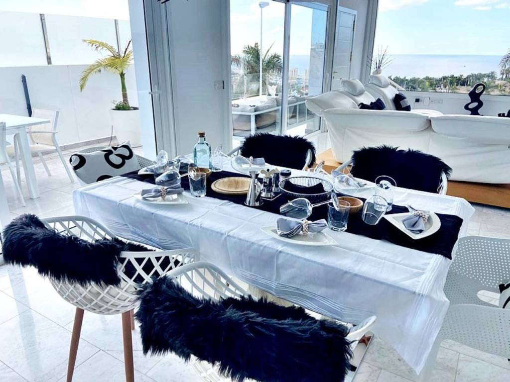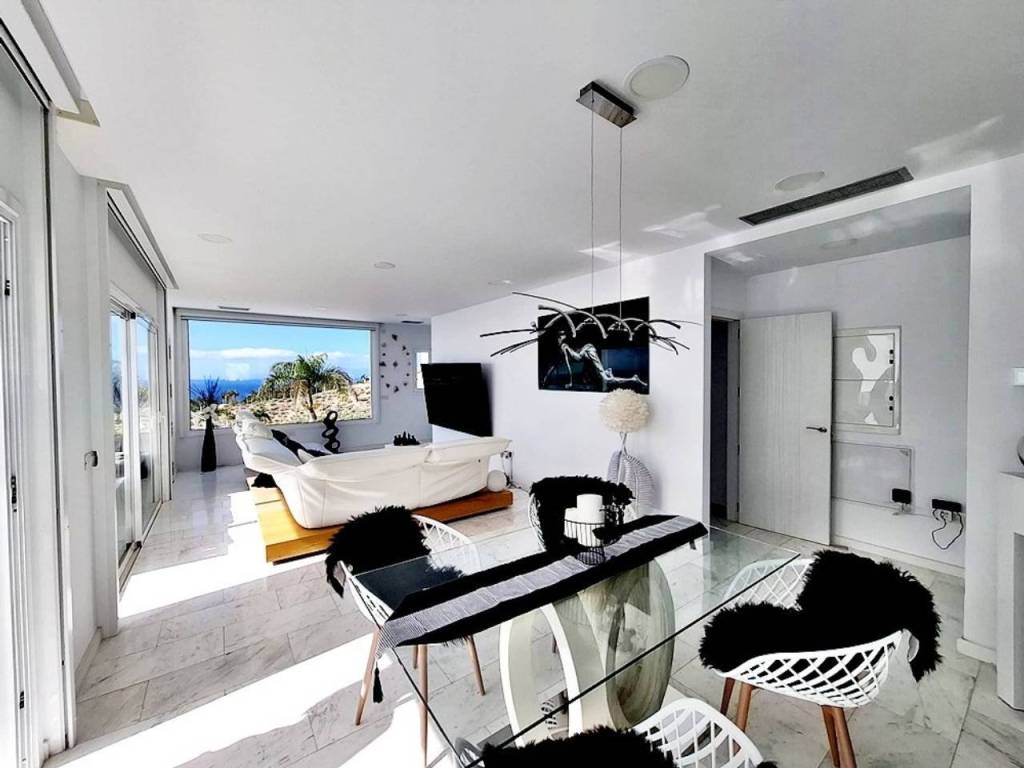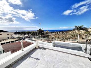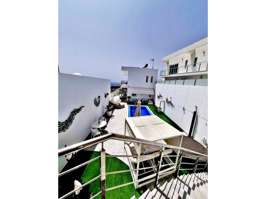 La primera planta es muy bonita, con un salón espacioso y grandes ventanales que ofrecen vistas impresionantes al océano y a la costa de Playa de Las Américas. La cocina americana, equipada con electrodomésticos de alta gama, incluye una isla central que encatará a los amantes de la cocina. Desde aquí, accedes a una terraza con toldo, piscina privada, solárium y zona de barbacoa, ideal para disfrutar de momentos inolvidables con amigos y familiares.