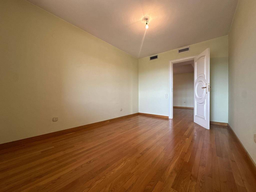 - Vestíbulo (18 m): amplio y elegante, con suelos de roble, puertas de madera maciza lacadas en blanco y paredes lisas sin gotelé.