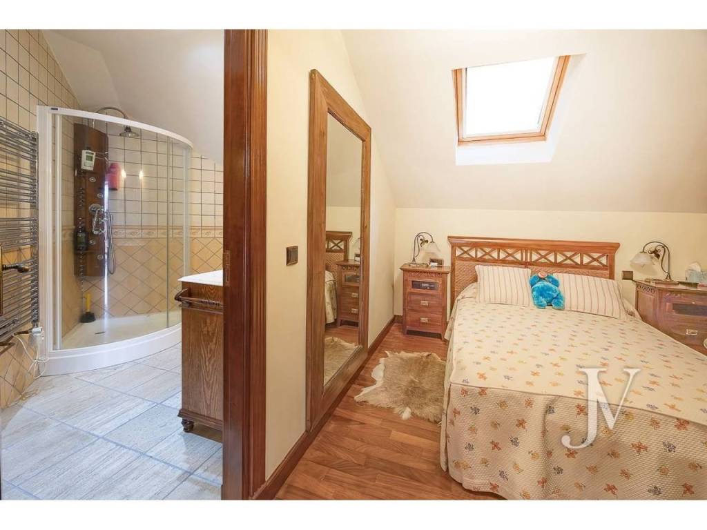Dormitorio con baño completo en suite.