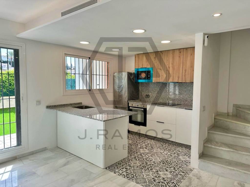 MAGNIFICO CHALET EN CALETA DE VELEZ JUNTO A BAVIERA GOLF - 3 Dormitorio - 2 Baños Completo (uno en suit) - Salon con salida a terraza directa - Amplia terraza con zona de barbacoa y posibilidad de construir una piscina privada. - Aire acondicionado en todas las habitaciones - Cocina americana - Amplio Solarium. - Orientación Este-Oeste - Parking con capacidad hasta para 2 vehiculos - Vistas despejadas al campo de golf y al mar - Zona residencial tranquila con facil acceso y cerca de la playa.