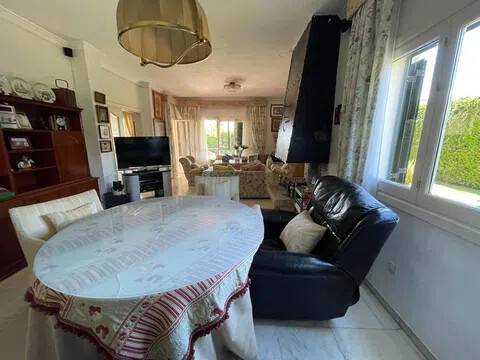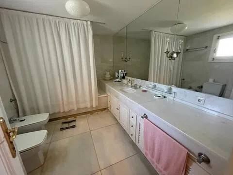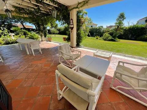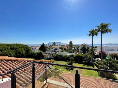 Vivienda en una situación privilegiada de la ciudad rodeada de amplios espacios verdes muy cuidados, y a su vez a muy pocos minutos del centro en coche. Nada mas entrar a la villa, nos encontramos con un imponente vestíbulo que conduce por una parte a un gran Salón con chimenea y desde otro ángulo se puede apreciar el Comedor integrado en este con una doble puerta para asi convertirlo en una estancia independiente, una Cocina-office de unos 40mts. con electrodomésticos, una despensa como lugar de almacenamiento, cerca de esta tenemos una habitación para el servicio y un baño completo, un Despacho convertible si se desea en salita y otra estancia mas dedicada a esparcimiento y muy cerca a esta una escalera por la que se accede a un sótano destinado a bodega. Y yá por otra parte, en la planta superior se ubican los Dormitorios, todos ellos en suite con baños individualizados y amplios armarios empotrados. Algunos de estos poseen amplias terrazas. En esta misma planta existe una escalera donde se llega a un Solarium observandose unas magnificas vistas de la Bahia, Gibraltar y del Mar Mediterráneo. Las calidades que se desprenden de la casa, en general, son muy buenas, describiéndose en las características que se mencionan en el inmueble. El exterior de esta propiedad lo componen un extenso porche que prácticamente rodea a toda esta, un espacioso jardín donde hay una piscina de gran capacidad y un camino que conduce al aparcamiento con capacidad para 4 o 5 coches. Proximo a la playa, supermercados (Mercadona, Lidl, Aldi), hospital, colegios, entidades bancarias, comercios, parques, rutas de senderismo, autovía… A 35 minutos de ciudades como Tarifa, Marbella, campos de golf de la zona, a una distancia un poco mayor de Ronda, pueblos blancos, y en general todas las poblaciones de Andalucia. Gastos derivados de la compra-venta y honorarios de agencia, no incluidos en el precio.