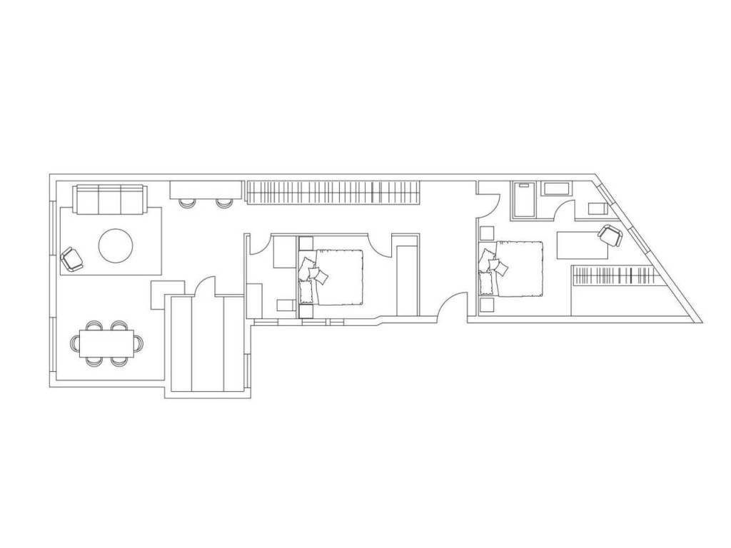 Dispone de dos dormitorios con camas tamaño queen y dos baños completos. La distribución permite una estancia práctica y equilibrada para compartir vivienda o teletrabajar.