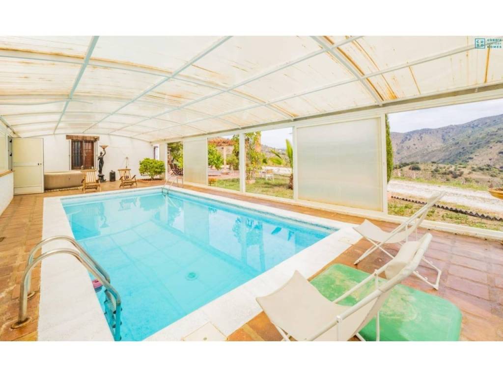 Esta fabulosa casa de campo se encuentra en el término de Casabermeja, a 30 minutos de Málaga y a 5 minutos de Casabermeja pueblo. Sobre una parcela de 25.000 m2, la parcela cuenta con extensos llanos, de hecho hay puesto 2 Domos para explotación turística, dando unos interesantes rendimientos. La vivienda de una sola planta, cuenta con un amplio y luminoso salón con chimenea en el cual se incluye la cocina que está separada por una barra, se respira un ambiente a rústico muy agradable, del mismo salón sale un pasillo en el que nos encontramos en primer lugar un baño completo y a continuación los 3 dormitorios, de los cuales 2 de ellos disponen de baño en suite. Desde la cocina se accede a un lavadero y de este nos lleva a una salida exterior al jardín y a otro baño completo con acceso para personas con movilidad reducida, tiene conexión a red eléctrica y municipal de agua. También cuenta con una piscina cubierta con cierres transparentes para poder ser utilizada en cualquier época del año, desde las que se disfruta de magníficas vistas despejadas. El garaje está techado y cuenta con una capacidad para más de 4 coches, también cuenta con zona de barbacoa y ocio. En la finca se encuentran 3 pozos con abundante agua para cualquier tipo de cultivos.