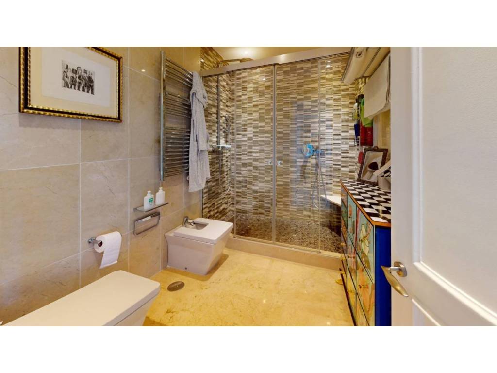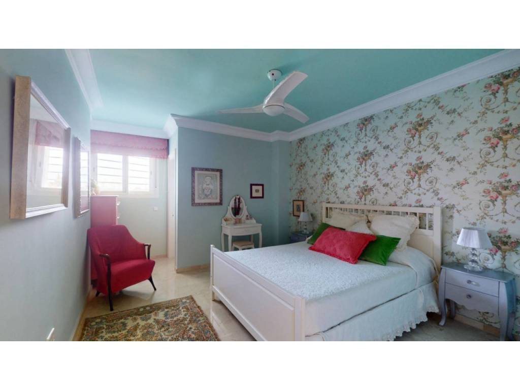 La vivienda cuenta con tres amplios dormitorios, dos de ellos con baño en suite, y un espacioso salón que se abre a una soleada terraza con orientación suroeste. Gracias a su cerramiento con cortinas de cristal, la terraza puede disfrutarse durante todo el año como un espacio adicional de confort y relax.