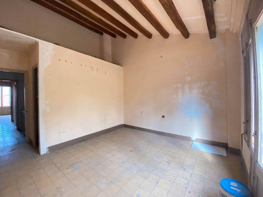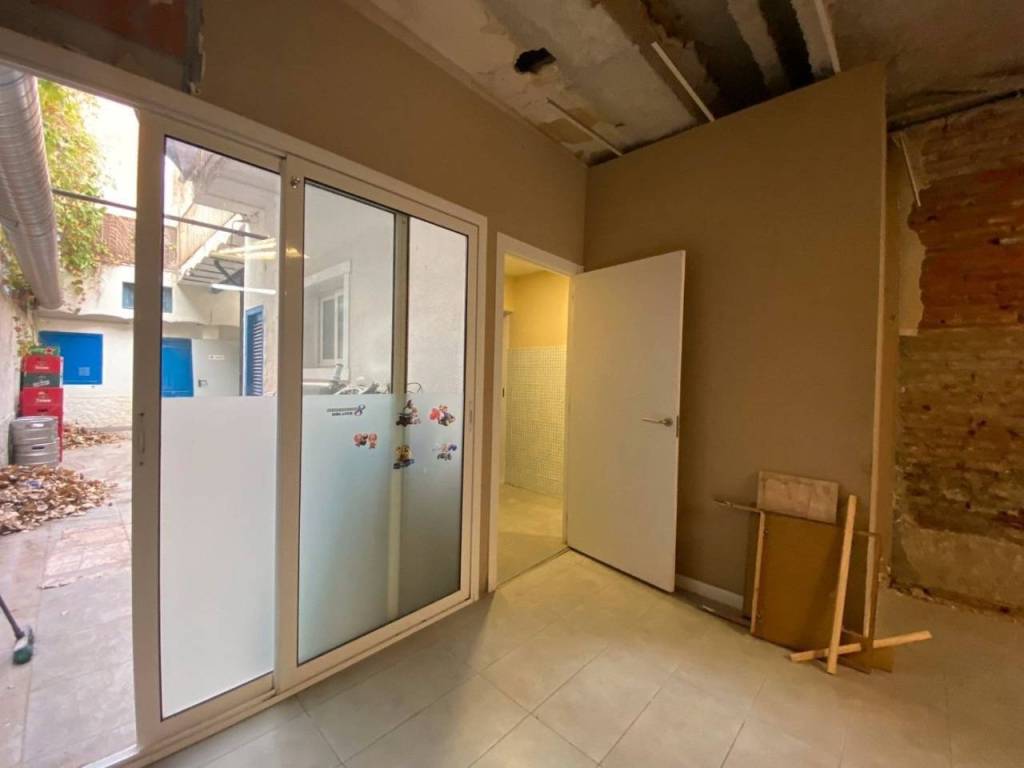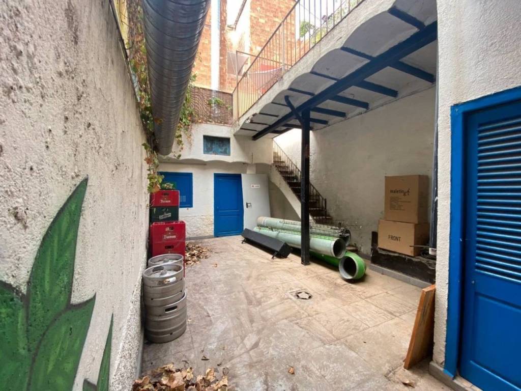 Con local comercial en planta baja (obligación de uso comercial) y sin posibilidad de construir garaje. Distribuida en 3 plantas. En planta baja encontramos un local, un baño, y un patio de 70 m² con un cubierto. En la planta primera hay 3 habitaciones (2 dobles, 1 individual) una exterior a terraza, y un baño. En la planta tercera hay 3 habitaciones (2 dobles, 1 individual).