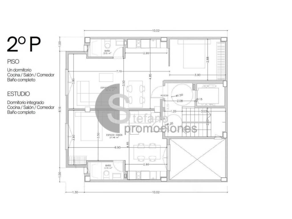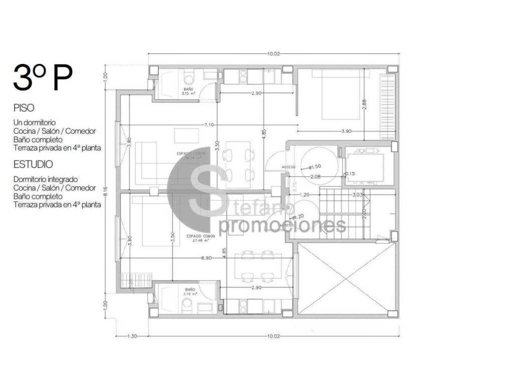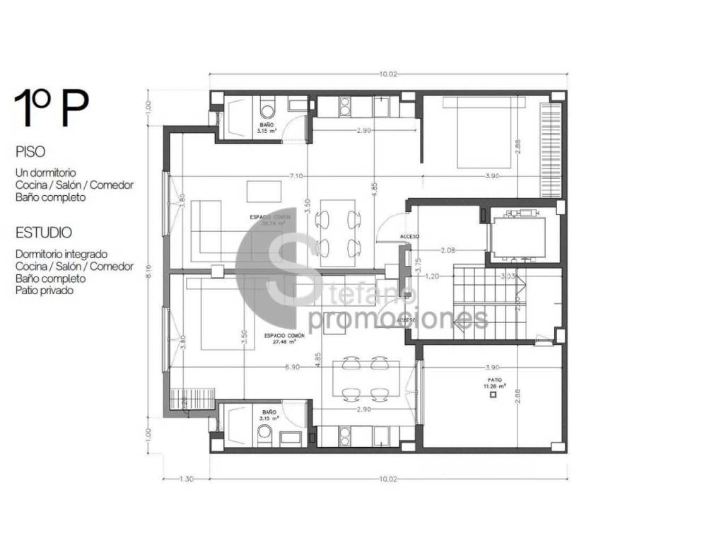 Superficies de 34,5m², con distribuciones inteligentes y espacios abiertos. Dos de ellos cuentan con espacios exteriores de uso exclusivo: