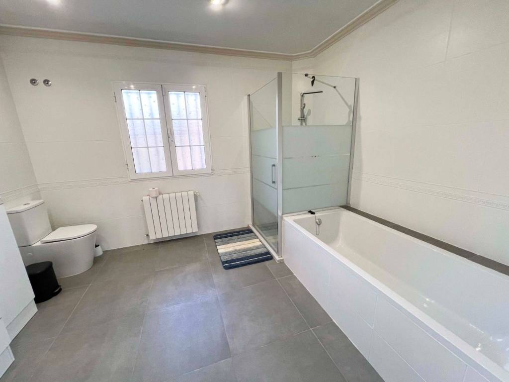 Baño de invitados con bañera, calefacción por suelo radiante y toallero eléctrico.