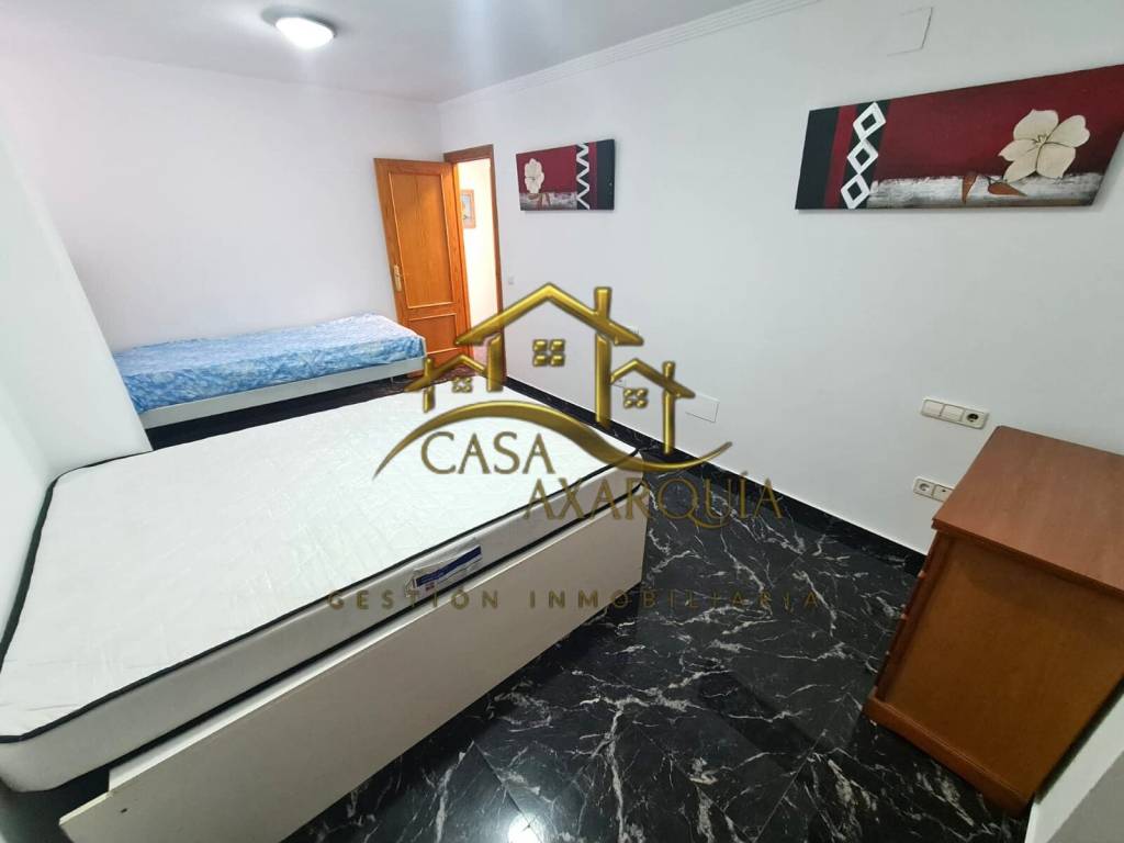 La vivienda consta de entradita, salón-comedor con cocina abierta, la cual dispone de una segunda entrada por la calle trasera del edificio, cuenta también con un baño con plato de ducha y 3 dormitorios luminosos, uno de ellos con aire acondicionado.