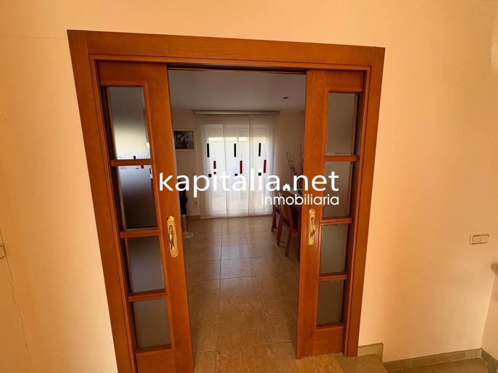 EXCLUSIVO ADOSADO A LA VENTA LISTO PARA ENTRAR A VIVIR EN ANNADesde la inmobiaria kapitalia les presentamos lo que puede ser la casa de tus sueños. Un exclusivo adosado con todas la comodidades posibles, que puedas necesitar, en una ubicación privilegiada, por estar en una calle muy tranquila de adosados, en la que en la acera de enfrente no hay construcción y puedes divisar el paisaje.Esta vivienda independiente, se distribuye en:Entrada independiente con terraza a nivel de calle y espacio para mesas y sillas.Planta semisotano, con acceso desde la vivienda. Dispone de un inmenso salón-comedor con chimenea, cocina integrada en el mismo, zona de televisión y zona de invitados, y un aseo.En Planta 0, tenemos la cocina espaciosa equipada con ventana a la calle, un aseo con caldera y lavadora integrada en el mismo, salón-comedor con salida la terraza interior, que dispone de barbacoa.En planta 1a, tenemos 3 dormitorios, uno doble y dos simples con armarios empotradosd, y una baño completo.Y por último en segunda planta o buhardilla, tenemos una espaciosa habitacion, con armarios empotrados a medida, baño en suite y terraza independiente, con vistas ala montaña.Como extras tenemos, chimenea, barbacoa, video portero, climatización centralizada, amplios ventanales de climalit, suelo de gres cerámico, en patios y terrazas, suelo de gres rústico, y acabados de 1a calidad.ESTA ES LA CASA QUE ESTAS BUSCANDO, NO DEJES ESCAPAR ESTA OPORTUNIDAD UNICAPor orden expresa del propietario, Kapitalia Inmobiliaria comercializa este inmueble en exclusiva. Con ello garantizamos un servicio de calidad, eficaz, rápido, seguro y sin interferencias de terceros. Si usted es agencia inmobiliaria y tiene un cliente para este inmueble, puede contactarnos; estaremos encantados de colaborar en ésta y otras operaciones.Kapitalia InmobiliariaAlbereda Jaume I, 19, 46800 Xativa96 228 78 85www.kapitalia.net