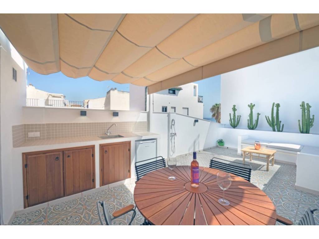La casa de la ciudad fue completamente renovada en 2022. Todo fue demolido, de modo que solo quedaron las paredes exteriores. Esto significa que la casa de hoy parece abierta y ventilada y, por lo tanto, solo necesita un mantenimiento mínimo. Está decorado en colores vivos y claros con un toque de estilo español. Tiene todas las comodidades modernas, como aire acondicionado, TV, lavadora, lavavajillas y una pequeña cocina nueva y que funciona bien. En la parte superior hay una hermosa terraza con una pequeña cocina al aire libre, comedor y sala de estar.