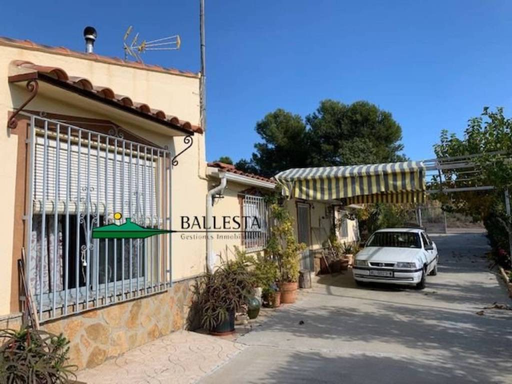 Terraza techada con barbacoa, porche, zona techada para coches, pozo ciego, habitación con caldera, cochera muy amplia para varios coches, aljibe.