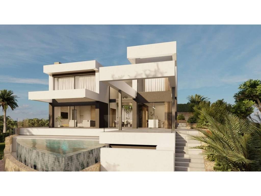 Magnífica Villa en construcción en Bavaria Golf. Con un diseño exquisito y contemporáneo, la propiedad se alza en una parcela de esquina, en una de las mejores urbanizaciones de la Axarquía, junto al campo de golf de Baviera.