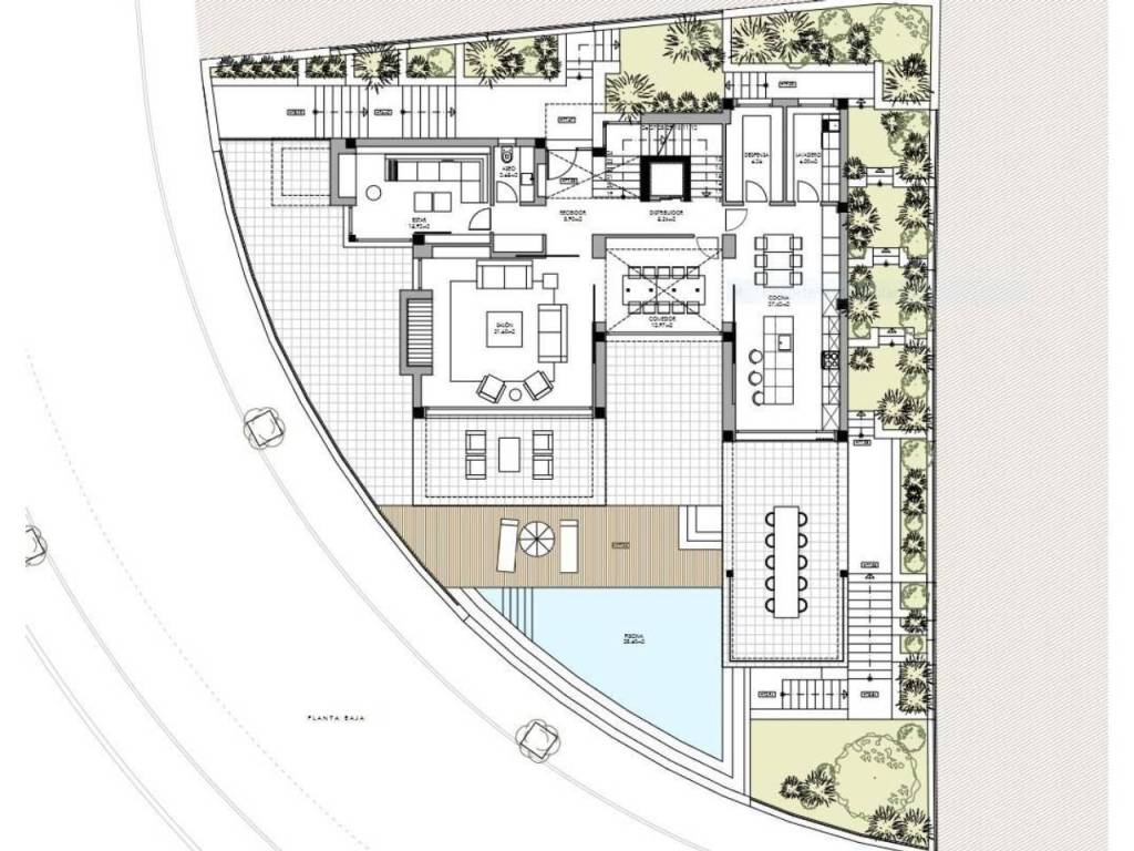 La propiedad dispone de un amplio salón-comedor-estar, dividido en varias estancias, amplia cocina con despensa y lavadero, aseo, ascensor, amplios jardines y terraza con piscina desbordante (Parcela de 534 m2).