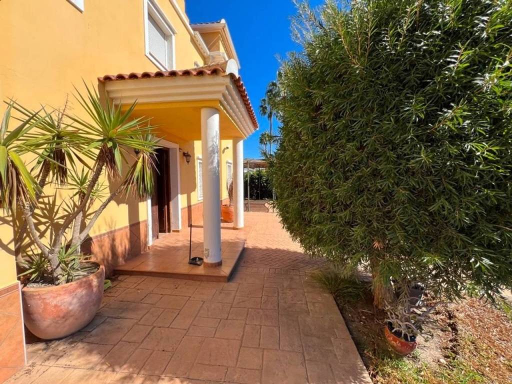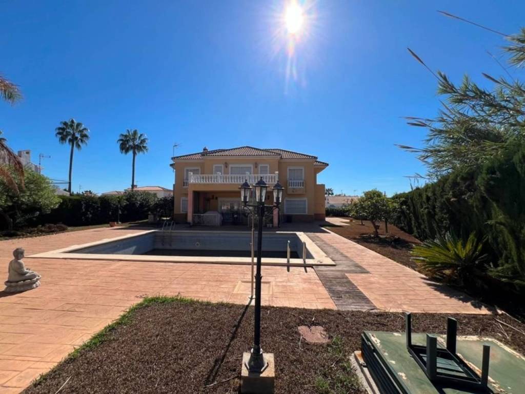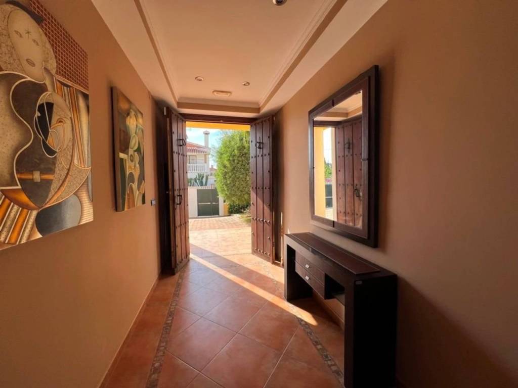 Venta en exclusiva magnifica Villa de reciente construcción a 200 m2 de la playa. Parcela de 1350 m2 llana con gran piscina. Consta de Villa principal con 284 m2 con dos salones, cocina amueblada con zona de lavandería, zona de salón con 70 m2 con sala de estar adicional de 50 metros y gran porche cubierto de 40 m2. La vivienda cosnta de 5 dormitorios con 4 baños. Villa de invitados 57 m2 con dos baños y dos dormitorios. Ubicación inmejorable con vistas al mar en zona llana con servicios cerca y buena conexión por carreteras.