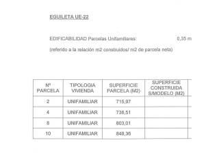 Destinadas a vivienda unifamiliar y con una edificabilidad sobre rasante de 0.35m² /m² y bajo rasante de 20m²/m²*