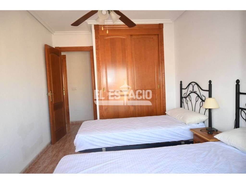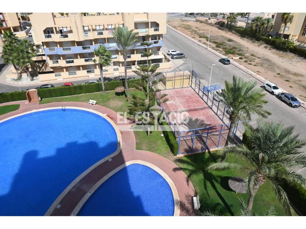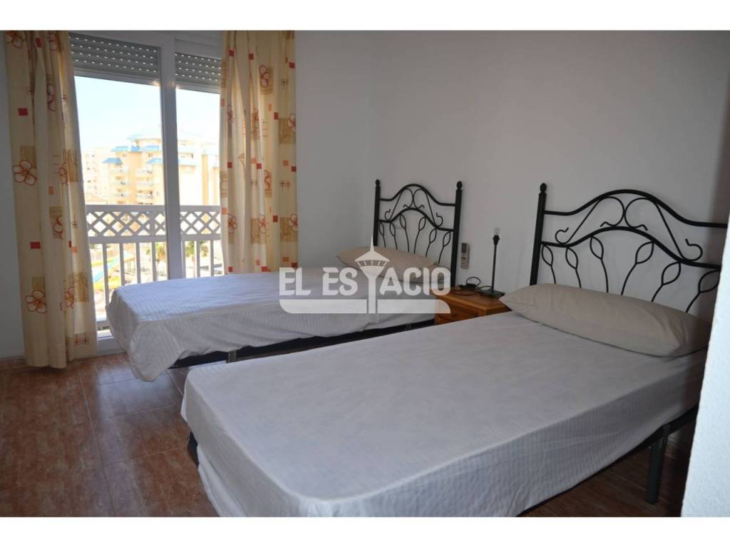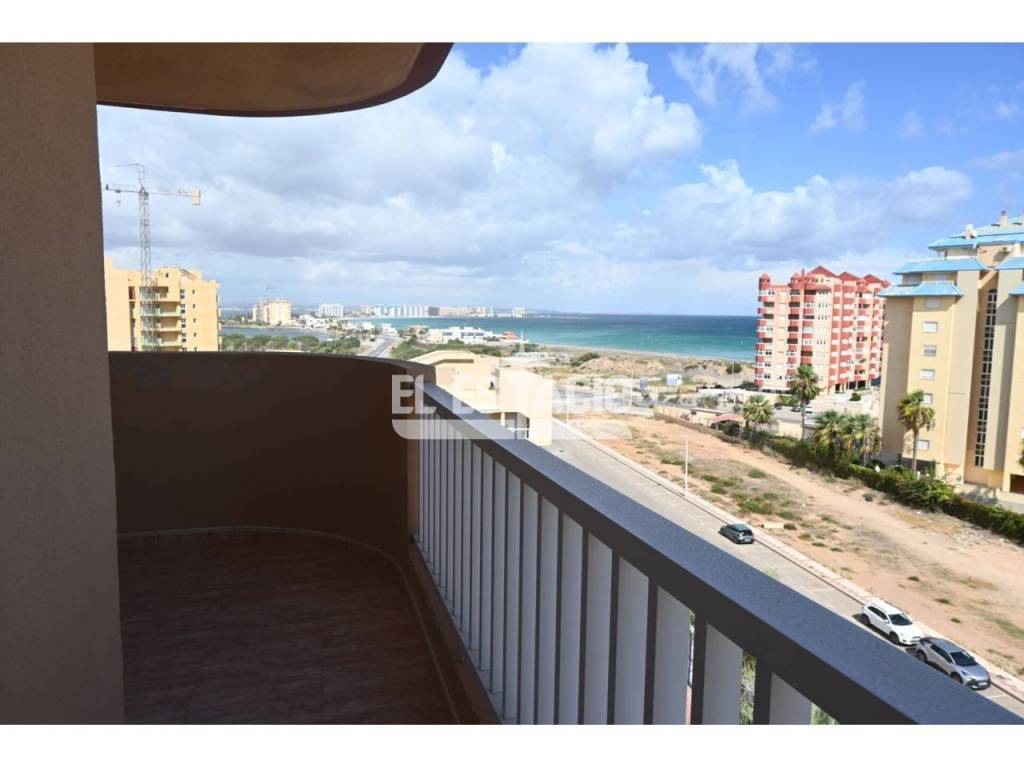 Apartamento en venta en la La Manga del Mar Menor. Altura sexto piso, cuenta con una superficie total de 110 m², distribuidos en 3 habitaciones dobles con armarios empotrados y 2 baños completos, su cocina es independiente incluye un cuarto para despensa y una galeria para lavadora y demas, amplio comedor con balcón y terrazadisfrutando de unas vistas al puerto y al mediterraneo. Además, dispone de aire acondicionado y calefacción eléctrica por conductos en toda la vivienda, suelos de gres y carpintería exterior de pvc. de muy buena calidad. El inmueble se encuentra en muy buen estado de conservación y se encuentra amueblado. En las zonas comunes de la urbanización se puede disfrutar del jardín, piscina, zona de parque infantil, y sistema de seguridad con cámaras por toda la urbanización. También dispone de todos los servicios como Supermercado, Restaurantes, Cafeterias, Farmacias, Bus, etc.