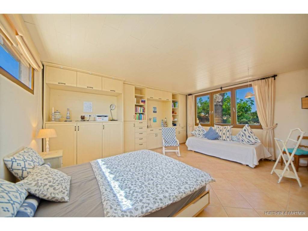 Hoy en día, la propiedad cuenta con una casa principal con un gran salón/comedor con chimenea, una cocina semicircular de estilo mallorquín - desde la que incluso se puede ver el mar, dos dormitorios y dos baños, así como un aseo de invitados.