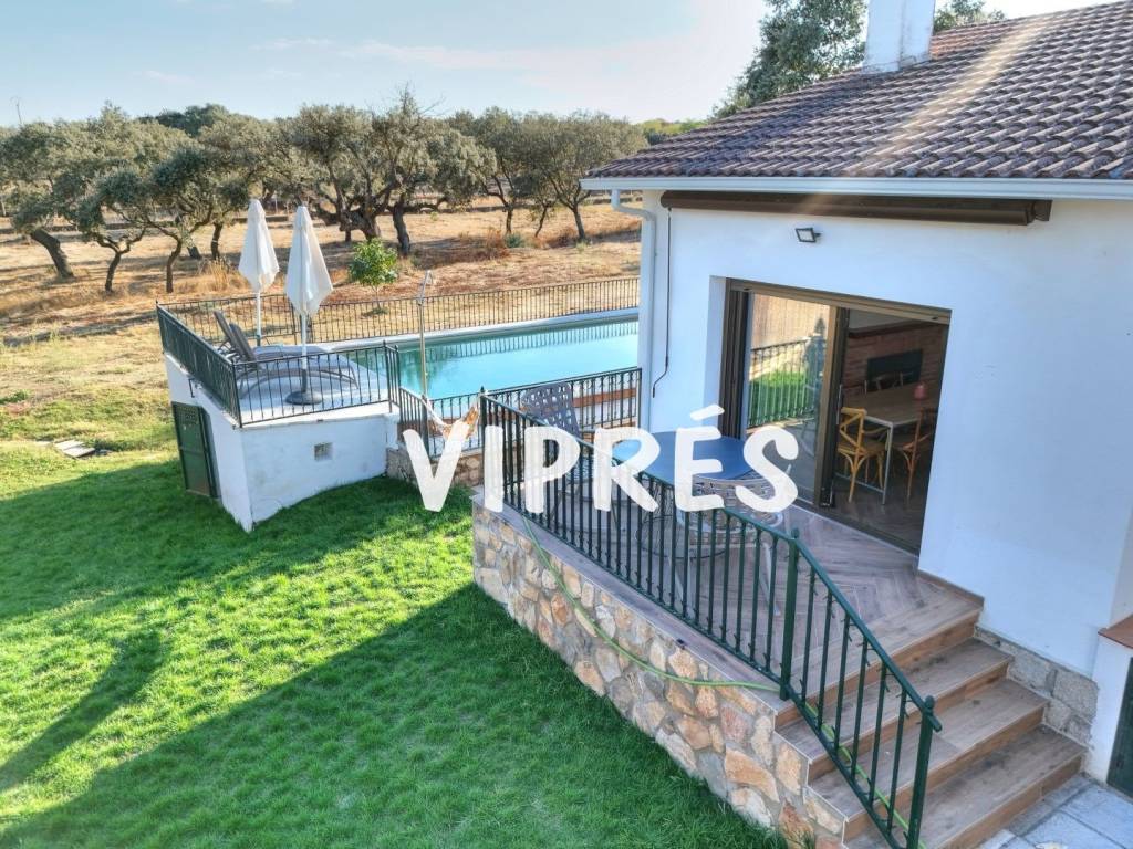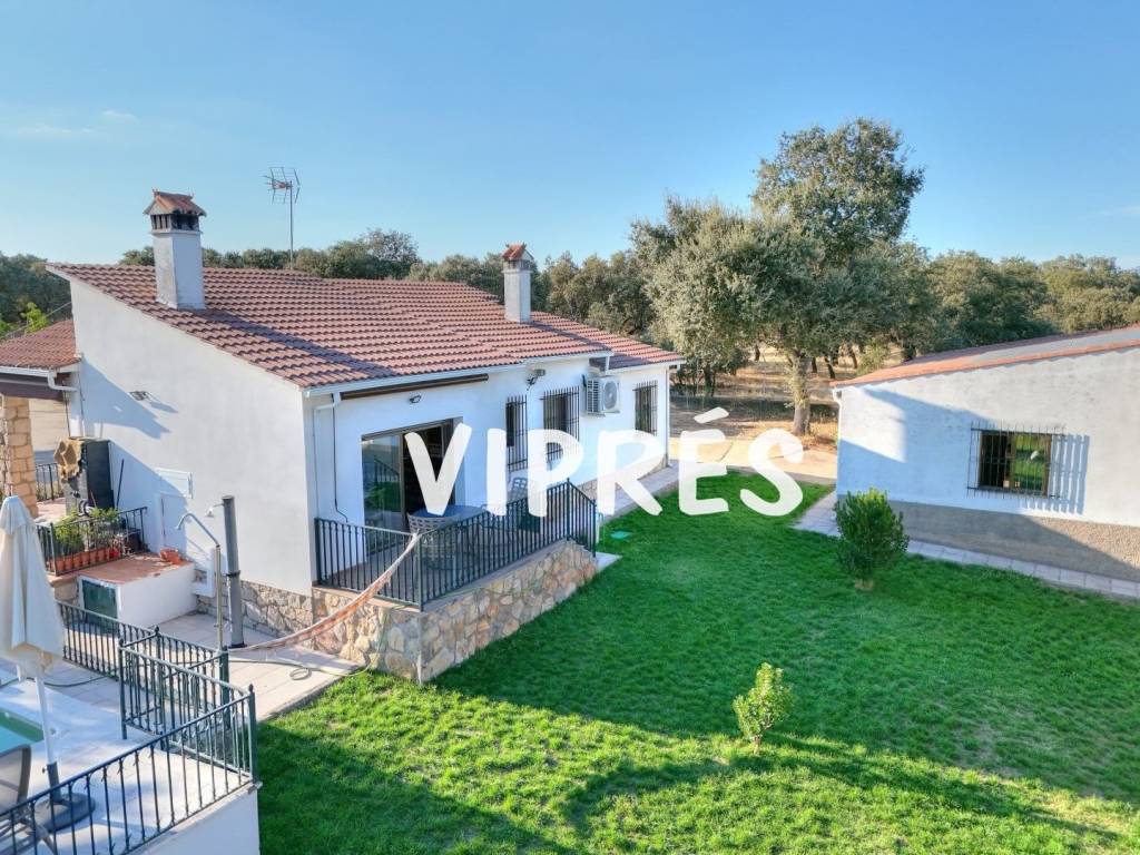 Oportunidad única! Chalet con gran parcela en El Monte del Casar (Cáceres) Se vende encantador chalet en una finca de 14.800 m, ideal para quienes buscan tranquilidad, naturaleza y calidad de vida, a pocos minutos de Cáceres.La propiedad cuenta con dos edificaciones independientes: Vivienda principal:2 dormitorios1 baño completoSalón con cocina americana2 amplios porches ideales para disfrutar del aire libreChimenea y bomba de frío/calor para el máximo confort Segunda edificación:1 dormitorio adicionalCocina equipadaSalón acogedor con chimeneaTrasteroPlacas solares Exterior:PiscinaÁrboles frutalesParcela completamente vallada con muro de obra y alambradaCamino de acceso cementado y acera encintada alrededor de la casaUna propiedad perfecta como residencia habitual, casa de vacaciones o inversión rural. Ubicada en un entorno natural privilegiado, con acceso cómodo y todas las comodidades para entrar a vivir. Soy Sol 660 51 40 91 y este es mi teléfono para más información o para concertar una visita!Certificado de eficiencia energética.