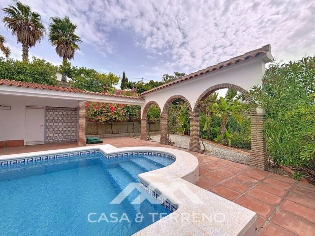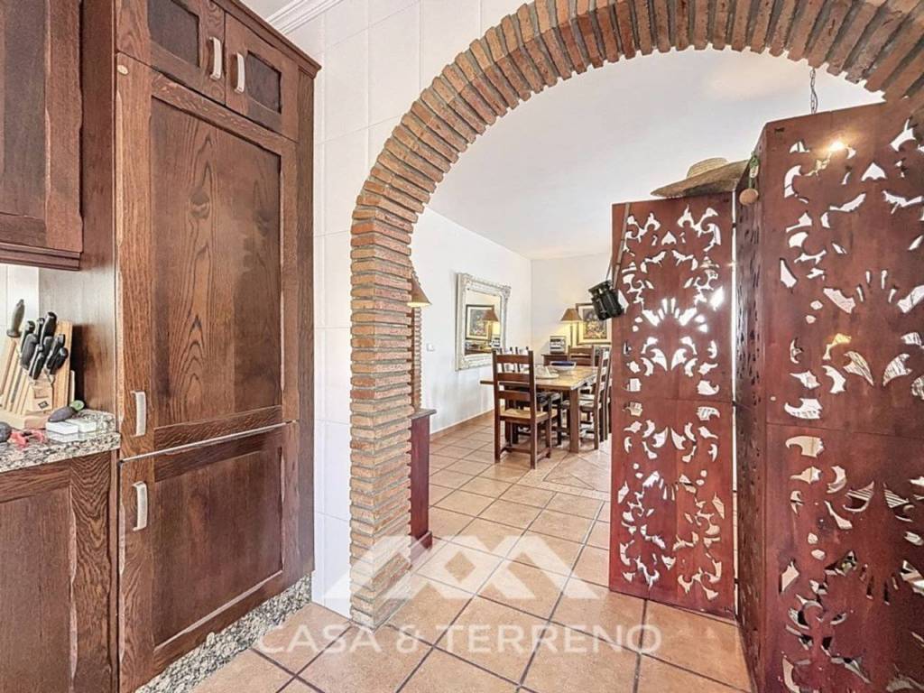 El exterior es un auténtico escenario para la vida mediterránea. Una gran terraza con cocina exterior, una piscina privada y una zona chill-out cubierta crean espacios ideales tanto para el descanso como para el entretenimiento. La terraza cuenta además con un área destinada a comedor al aire libre, perfecta para disfrutar de largas veladas. La propiedad se completa con una cochera, que aporta comodidad y funcionalidad.