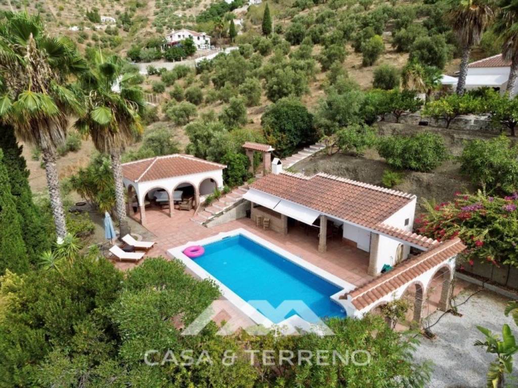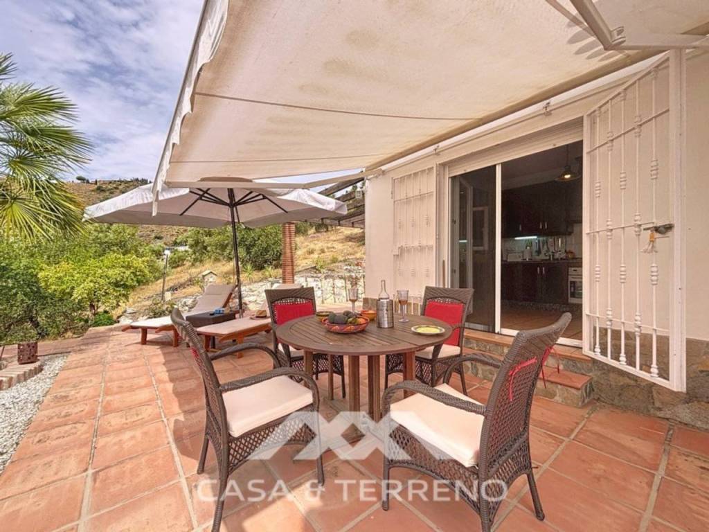 Esta encantadora casa de campo en Canillas de Albaida, Málaga, ofrece una combinación armoniosa de encanto rústico y confort moderno. La propiedad, de una sola planta, se distribuye en tres dormitorios con armarios empotrados, dos de ellos con baño en suite, sumando en total tres baños completos, además de una cocina abierta al salón-comedor, que crea un ambiente amplio y funcional.