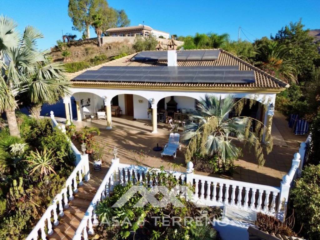 En el exterior, la propiedad destaca por su amplia parcela llena de diversos árboles frutales, incluyendo frutas exóticas, además de un pequeño invernadero y un trastero. La vivienda cuenta con una cochera, piscina privada con altavoces bajo el agua y sistema de natación contracorriente, zona chill out y en la terraza una zona de barbacoa, perfecta para disfrutar de comidas al aire libre mientras se contemplan espectaculares vistas al mar y a la montaña.