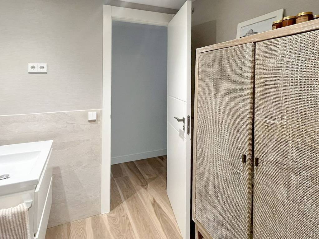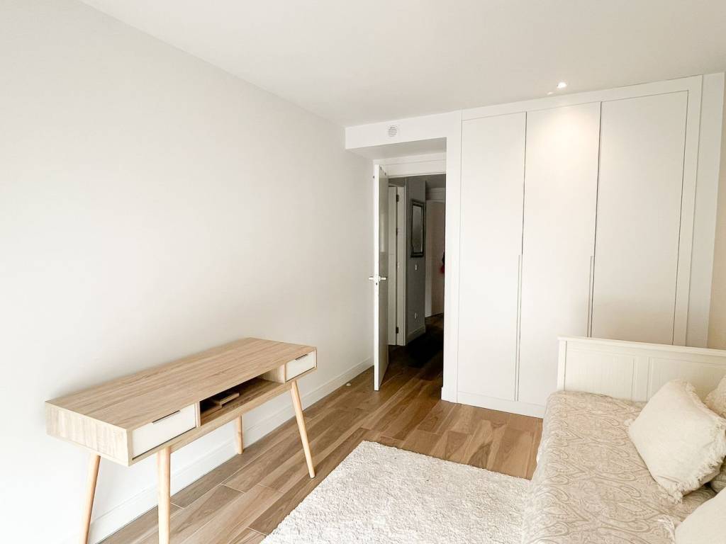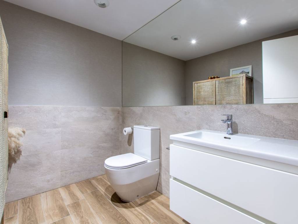 Todos los armarios de la vivienda son lacados en blanco y están vestidos. Los suelos son de gres cerámico imitación madera lo que aporta confort y durabilidad. Toda la vivienda cuenta con un sistema de domótica que se regula tanto desde el dispositivo del salón como a través de una APP móvil que permite regular por estancias la temperatura, apagado de luces y control de persianas eléctricas. El termostato mantiene la vivienda por ti siempre a una temperatura ideal siendo totalmente eficiente al ser de eficiencia A+ por el novedoso sistema de geotermia.
