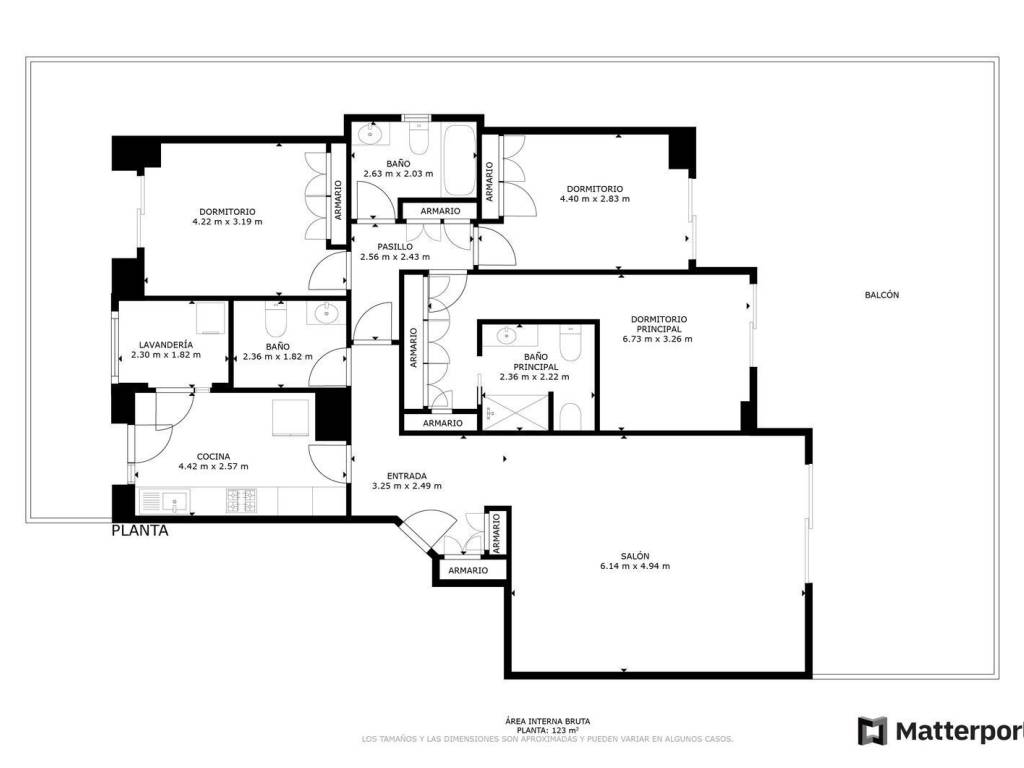 La superficie construida de la vivienda es de 146,33m2 y la estupenda terraza en forma de U que rodea casi toda la casa haciendo esquina frente a la piscina cuenta con 125,48m2. A la terraza se puede acceder desde 2 de los dormitorios salón y cocina.