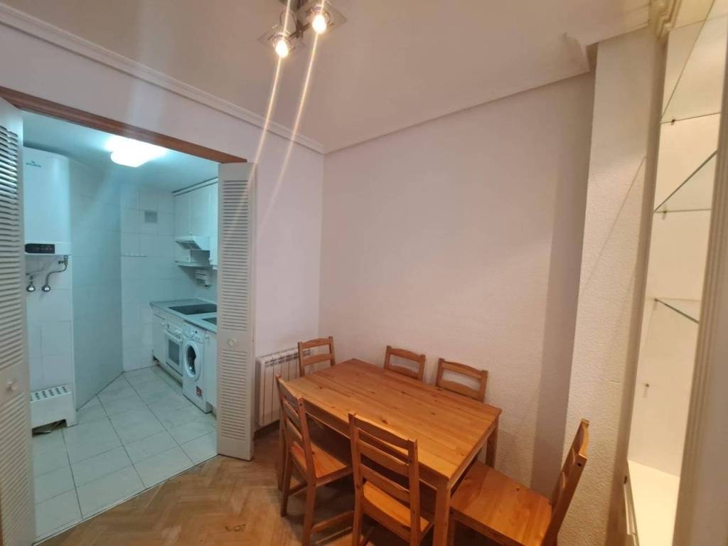 Dispone de pintura gotelé, cocina equipada, armarios empotrados, luminoso, calefacción eléctrica, amueblado, ascensor, ventanas climalit, cama doble, suelo parquet, puerta blindada, cocina amueblada y exterior.