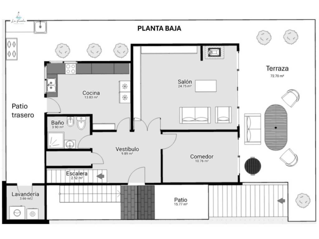 - Cocina office totalmente equipada y con salida directa al patio posterior que rodea la vivienda.