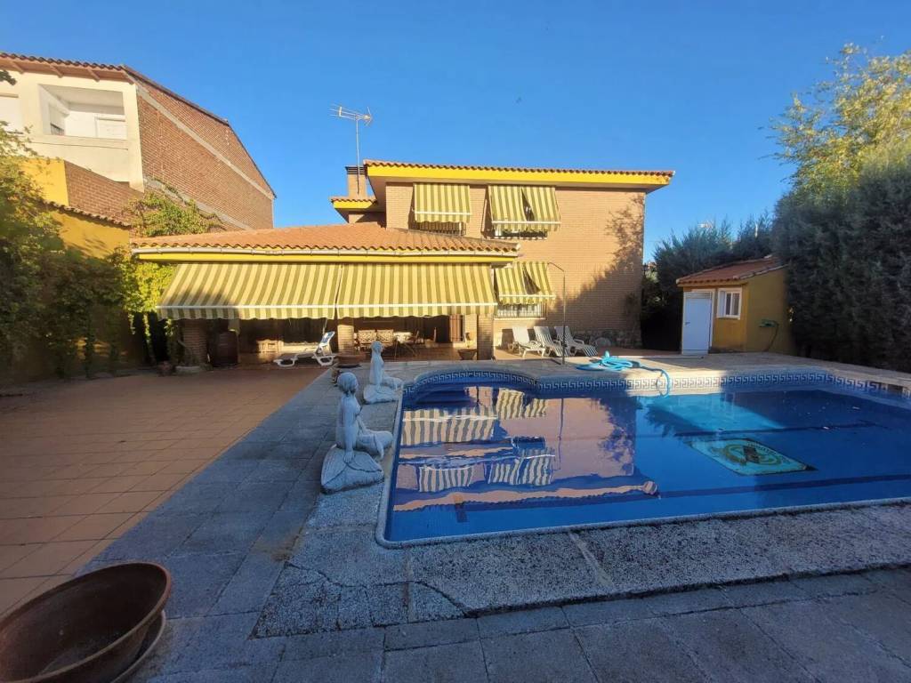 Venta de estupendo chalet independiente en San Román de los Montes a 10 minutos de Talavera y 1 hora de Madrid. Dispone de 4 dormitorios, amplia cocina toda equipada, salón, 3 baños, sótano con bodega, chimenea y pequeña cocina, garaje para 3 coches, piscina, barbacoa, jardín, todo en perfecto estado. 500m² de terreno y 240m² de construcción. Precio inmejorable 196.000€.