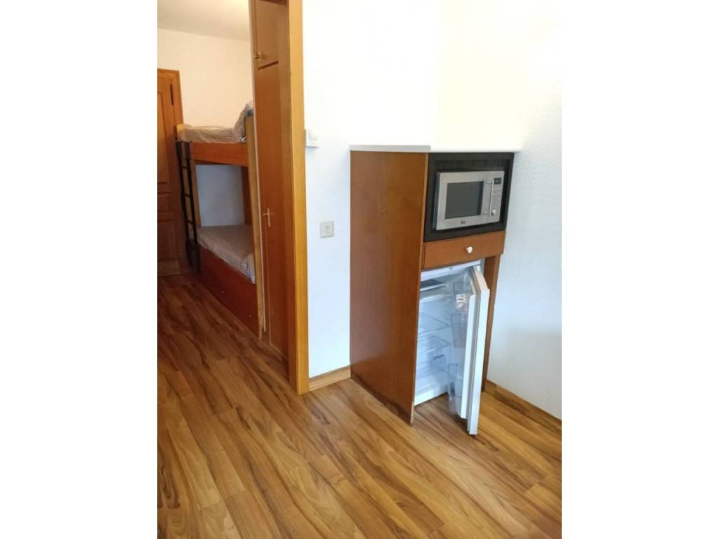 Es un apartamento funcional, consta de un hall en el que hay instalada una litera, cocina abierta hacia el salón comedor, un baño dividido, compuesta una parte por bañera y lavabo y la otra por el inodoro. En la planta superior encontramos el dormitorio con su baño y una amplia zona de paso con barandilla, abierta hacia el salón equipada con otra litera, dando capacidad para 6 personas. Armarios empotrados en ambas plantas