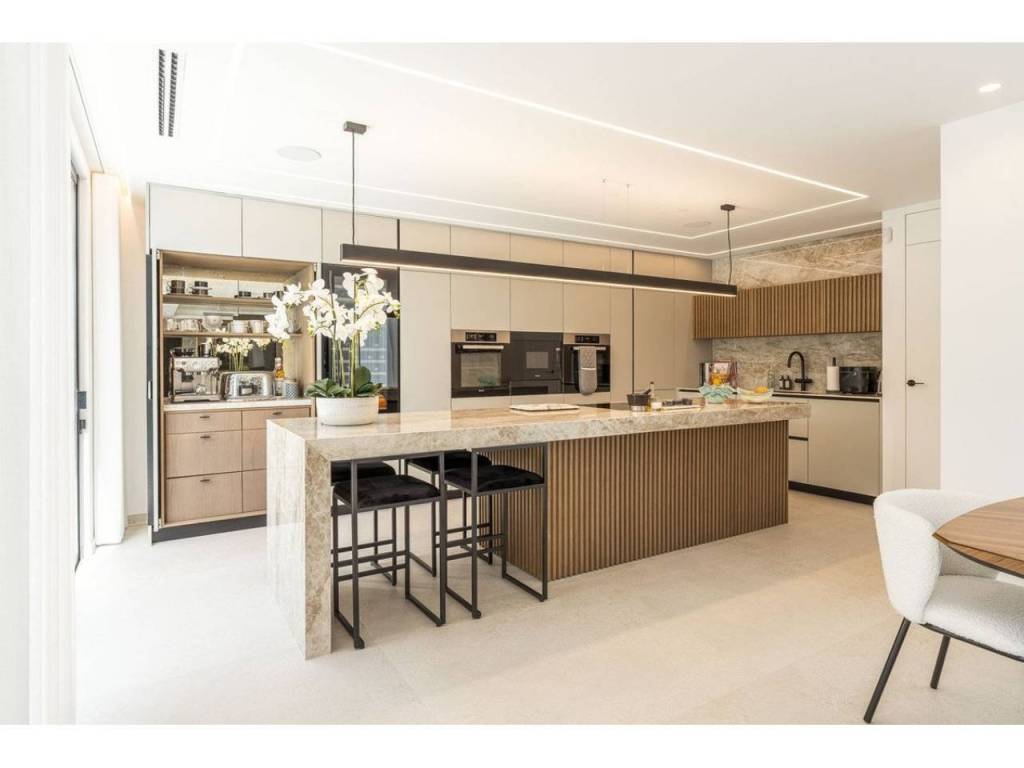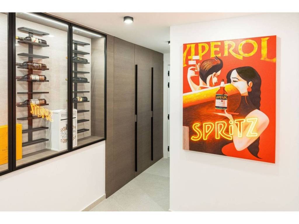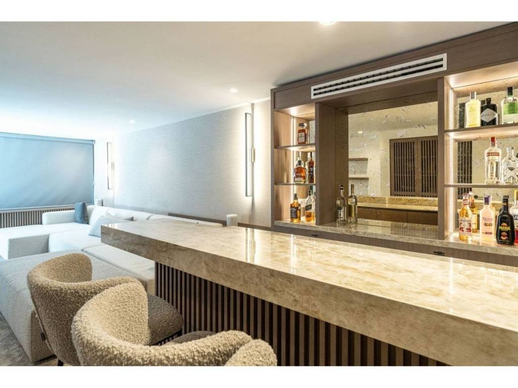 Al descender al sótano, el entretenimiento se convierte en el centro de atención. Esta planta cuenta con una sala de cine, una elegante bodega, un elegante bar y amplio espacio de almacenamiento, lo que la convierte en el entorno perfecto para celebrar noches de cine o eventos privados. Los acabados de alta calidad, una paleta de colores neutros dominada por suaves tonos crema y el uso de materiales de primera calidad en toda la villa crean una atmósfera de sofisticación discreta al tiempo que maximizan la luz natural.