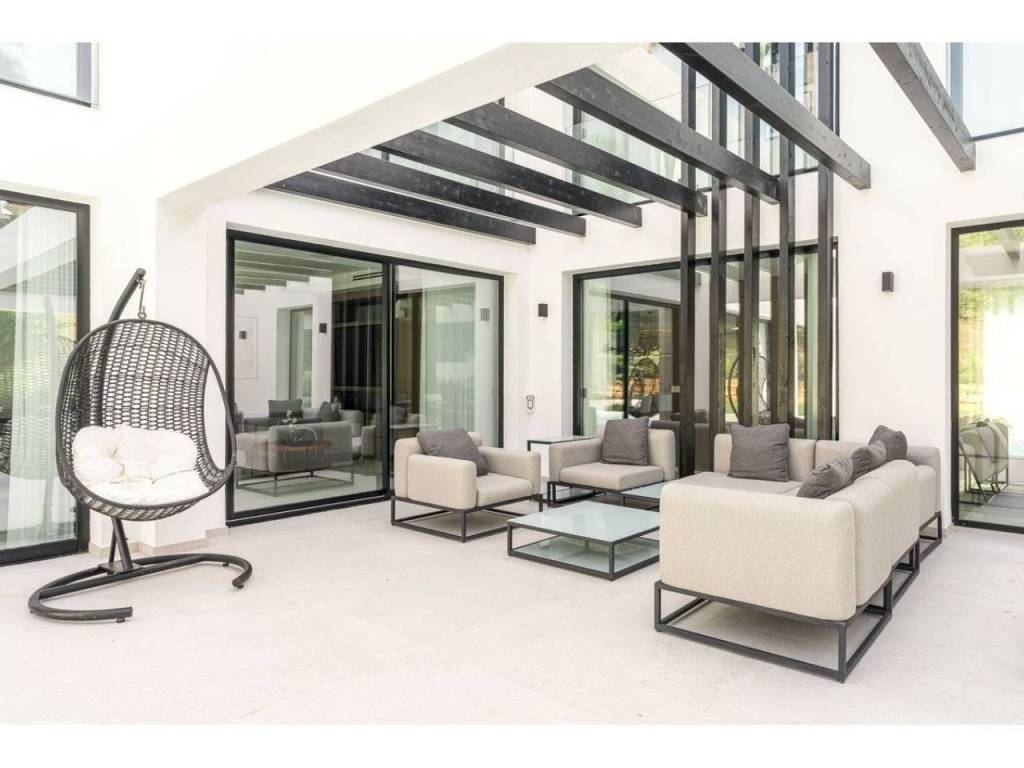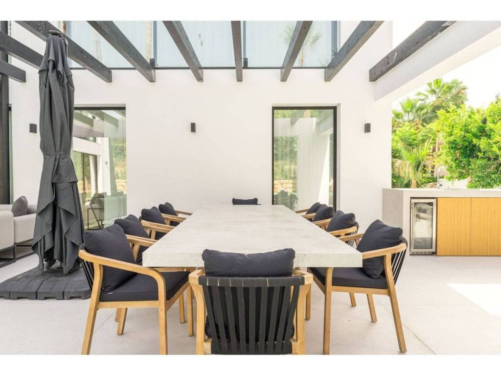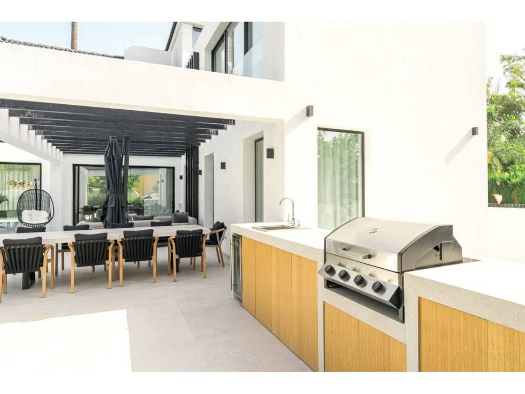 Impresionante villa en venta en la cotizada zona de Nueva Andalucía, Supermanzana H, que ofrece la combinación ideal de diseño moderno, confort refinado y un ambiente familiar. Esta residencia de cuatro dormitorios y cuatro baños, fácilmente convertible a cinco, se distribuye en tres plantas y tiene una superficie construida de 360 metros cuadrados. La propiedad cuenta con amplios interiores, jardín privado y acogedores espacios exteriores diseñados para complementar el cálido clima de la zona. La villa fue recientemente reformada para mejorar su distribución y acabados, haciéndola aún más atractiva para quienes buscan una casa lista para entrar a vivir que equilibre estilo y practicidad.