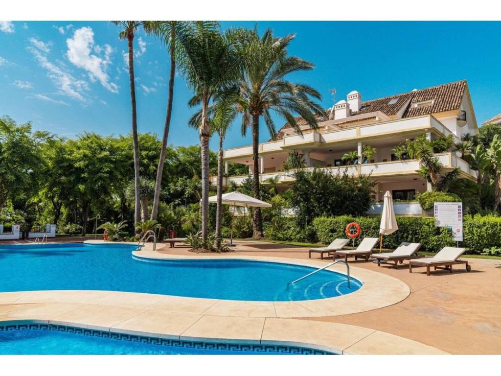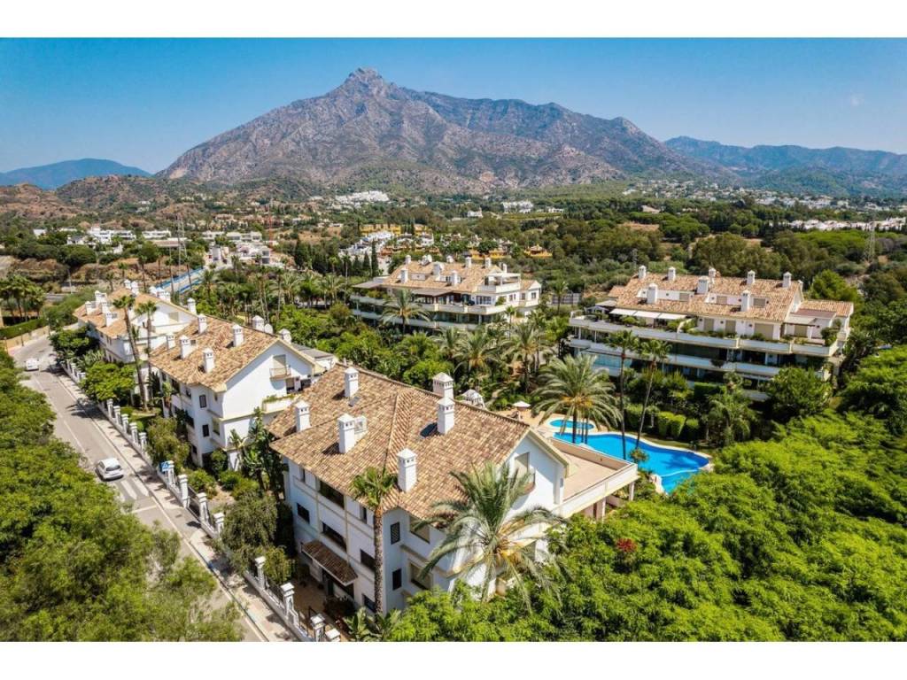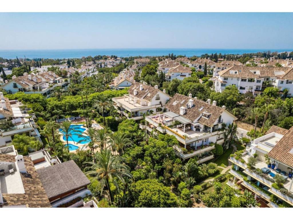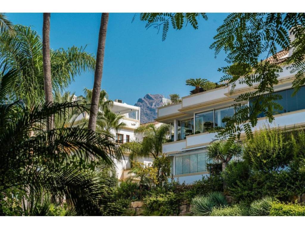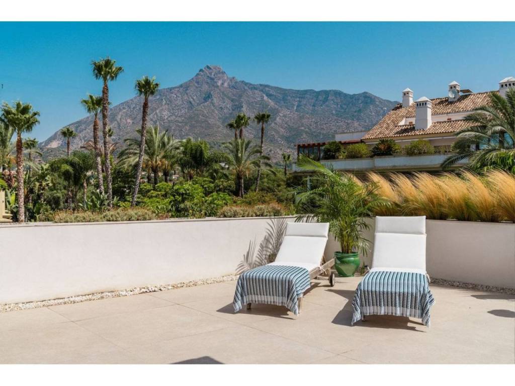 Lujoso apartamento dúplex de tres dormitorios con baños en suite en venta en una urbanización segura y prestigiosa con una ubicación ideal en la exclusiva Milla de Oro de Marbella. Construida en 2006 y recientemente renovada, esta elegante propiedad combina acabados contemporáneos con un lujo práctico, ofreciendo 276 m² de superficie construida, incluyendo aproximadamente 114 m² de terrazas privadas. Gracias a su ubicación elevada, el apartamento disfruta de vistas panorámicas a la montaña de La Concha y a los jardines comunitarios, lo que lo convierte en el lugar ideal para quienes buscan comodidad, vistas y un estilo de vida basado en la comodidad.