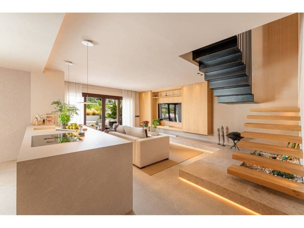 Este dúplex ha sido completamente renovado con los más altos estándares de calidad y equipado con comodidades de última generación, como aire acondicionado con sistema Air Zone, calefacción por suelo radiante, iluminación LED, sistema de música integrado y cortinas automáticas, todo ello fácilmente controlable mediante un sistema domótico. Los elementos de madera natural complementan las líneas limpias, y la tecnología integrada, como persianas eléctricas y un sistema de seguridad inteligente con doble acristalamiento y contraventanas de seguridad, garantiza un equilibrio perfecto entre comodidad y seguridad.