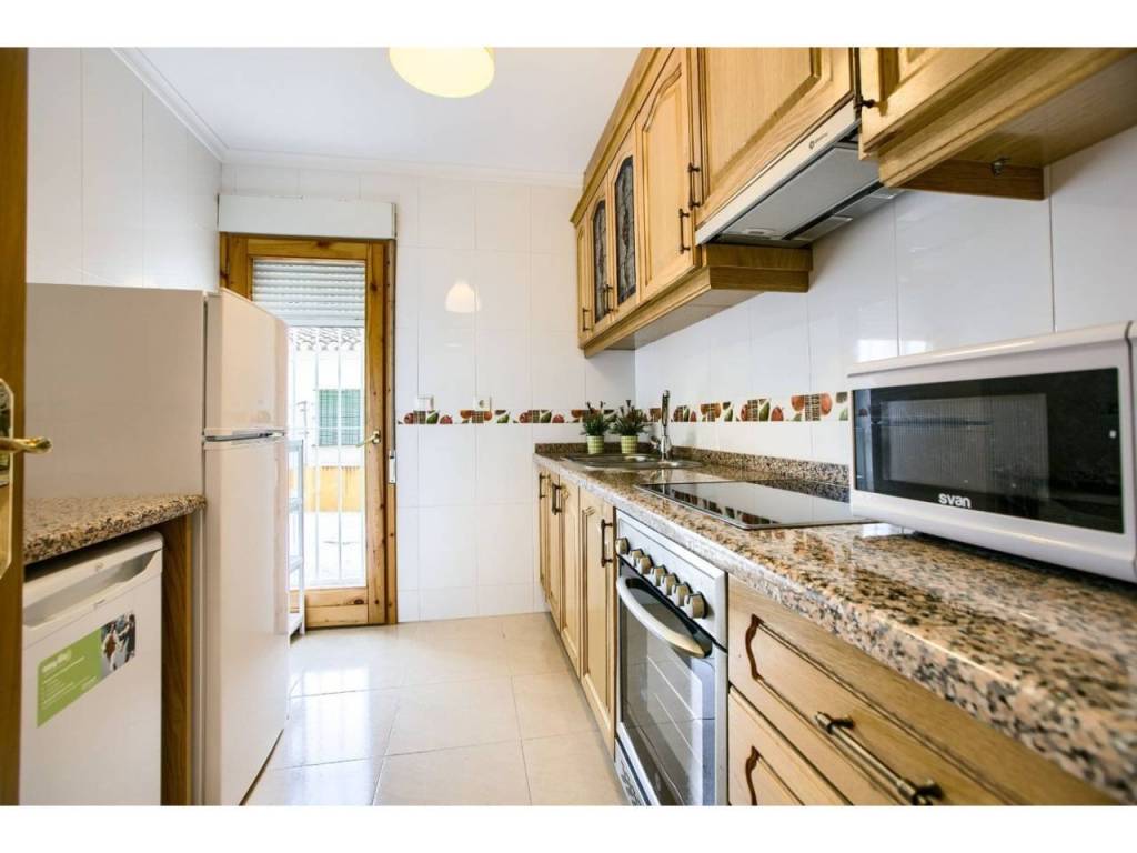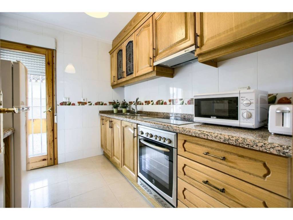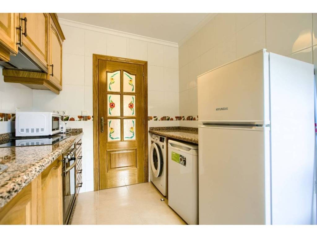 Un baño con bañera y otro con ducha. Cocina totalmente equipada, con salida al exterior.
