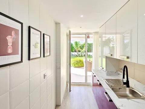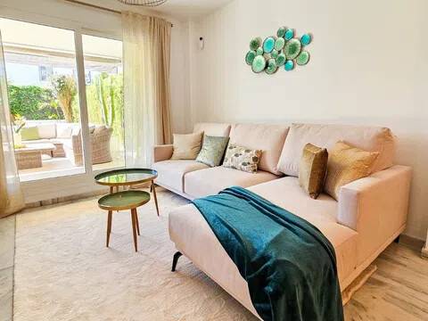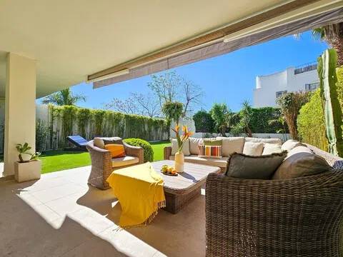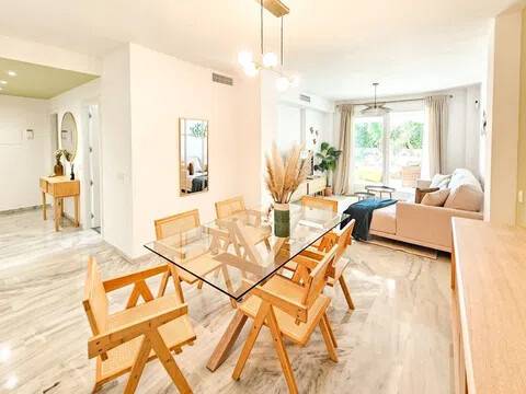 Alquiler Mensual Exclusivo: Un Oasis de Confort Familiar Junto a Puerto Banús, Marbella ¡Descubre tu hogar ideal en el corazón de la Costa del Sol! Este precioso apartamento, recientemente renovado con materiales de alta calidad, ofrece una ubicación inmejorable a pocos pasos del glamuroso Puerto Banús y de la dorada playa de Rodeíto. Prepárate para disfrutar de un estilo de vida excepcional en una de las zonas más codiciadas de Marbella. Puerto Banús y Rodeíto: Un Entorno Familiar en Crecimiento con Servicios de Primer Nivel La zona que rodea Puerto Banús y la playa de Rodeíto es un enclave residencial de prestigio, muy apreciado por familias que buscan un entorno seguro, tranquilo y con fácil acceso a una amplia gama de servicios de alta calidad. Su proximidad a colegios internacionales de renombre la convierte en una opción ideal para familias con niños que desean una educación de primer nivel en un ambiente cosmopolita. Además, la zona experimenta un crecimiento económico constante, impulsado por el turismo de lujo, la oferta de ocio de primer nivel y su atractivo como destino residencial exclusivo. Un Apartamento Renovado para el Máximo Confort Familiar: Desde el espacioso recibidor hasta el luminoso salón, cada rincón de esta vivienda en planta baja ha sido cuidadosamente diseñado para ofrecer un confort excepcional. La moderna cocina, totalmente equipada con electrodomésticos de alta gama, es perfecta para los amantes de la gastronomía y para disfrutar en familia. Tu Edén Privado: Un Jardín de Más de 180 m²: Disfruta de una hermosa sala de estar con acceso directo a un magnífico jardín privado de más de 180 m², un espacio exterior único para relajarse, jugar con los niños o disfrutar de comidas al aire libre con total privacidad. Su acceso directo a la calle añade una comodidad extra. Descanso y Privacidad Garantizados: Los dos elegantes dormitorios ofrecen un refugio de tranquilidad. El dormitorio principal cuenta con un baño en suite y amplios armarios empotrados, garantizando privacidad y comodidad. Ambos dormitorios disfrutan de vistas al jardín con orientación sur, ideales para relajarse y disfrutar de la luz natural al final del día. Comodidades para una Vida Confortable: La propiedad cuenta con calefacción eléctrica, aire acondicionado para tu confort durante todo el año y una plaza de aparcamiento incluida. Ubicada en la planta baja de un edificio con ascensor, garantiza un fácil acceso para todos. Un Complejo Residencial con Servicios Excepcionales para Toda la Familia: El complejo ofrece dos piscinas comunitarias rodeadas de exuberantes jardines, perfectas para refrescarse y disfrutar del sol en familia. Además, cuenta con pistas de pádel y canchas de baloncesto para los más activos, así como un servicio de conserjería para tu comodidad y seguridad. Precios Flexibles para tu Estancia: Semana Santa: 1.500€/semana Alquileres mensuales: Abril y Mayo: 3.000€/mes Junio: 4.000€/mes Julio: 5.000€/mes Agosto: 6.000€/mes Alquileres de invierno (Septiembre a Mayo): 2.500€/mes Este apartamento representa una oportunidad excepcional para disfrutar de una vida de calidad en una ubicación privilegiada, ideal para familias que buscan comodidad, seguridad y acceso a todos los servicios en una zona con un futuro prometedor. ¿Te imaginas disfrutando de tu propio jardín privado a pocos pasos de la playa y Puerto Banús? ¡No dejes pasar esta oportunidad única! Contáctanos hoy mismo para obtener más información y reservar tu estancia. ¡Estamos seguros de que te enamorarás de este hogar!