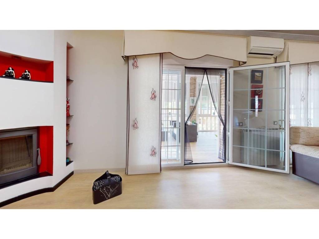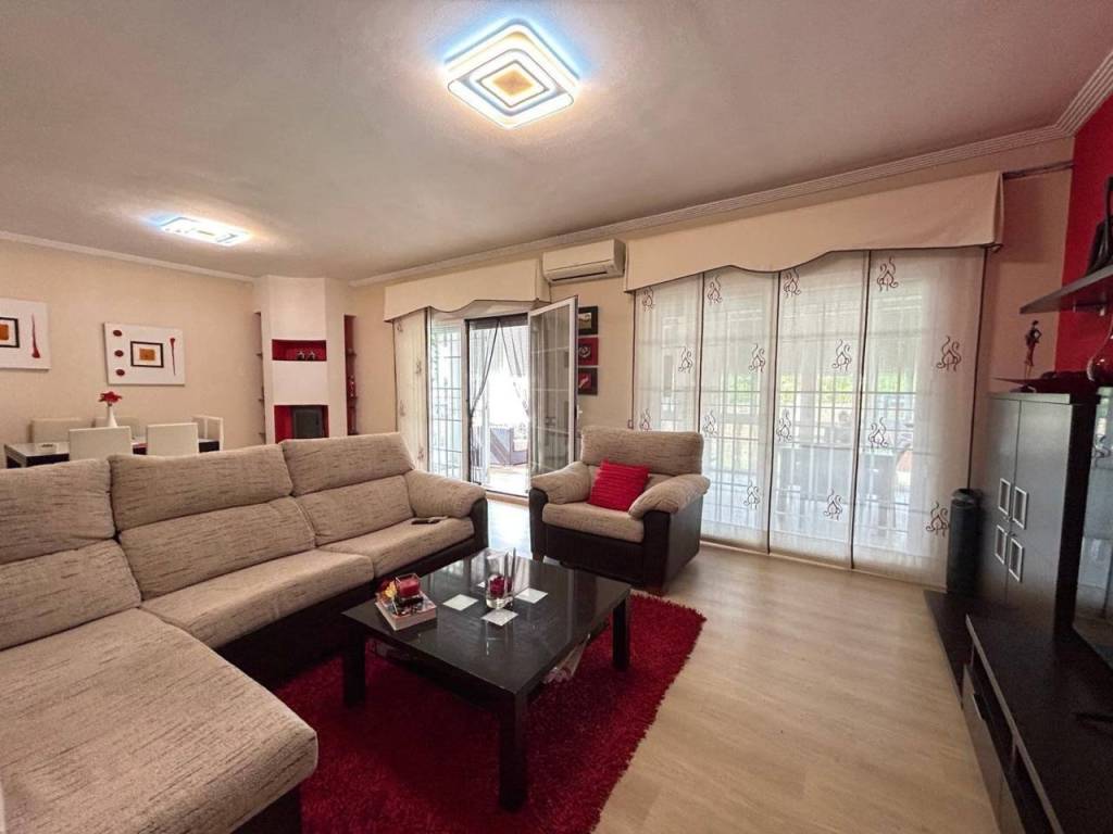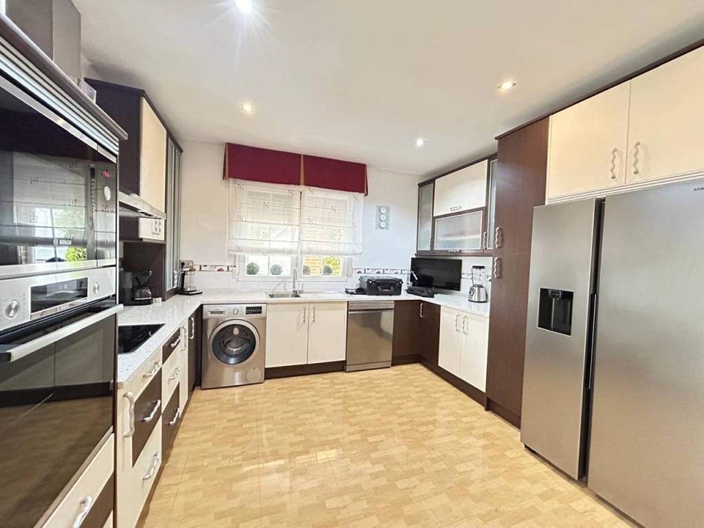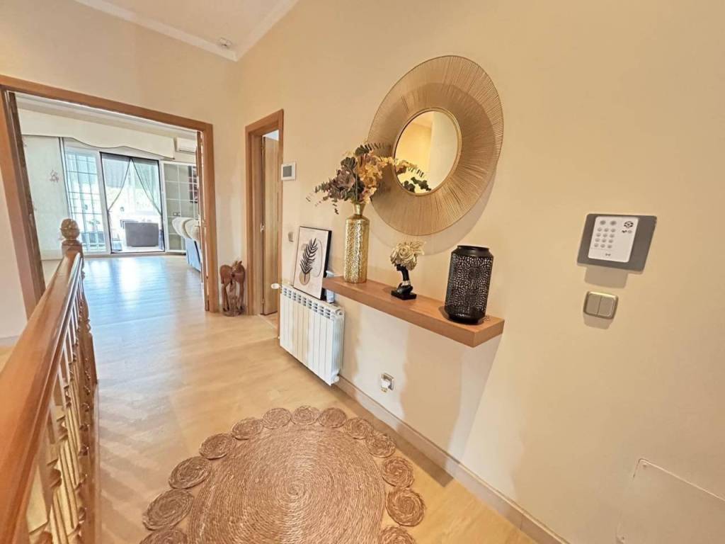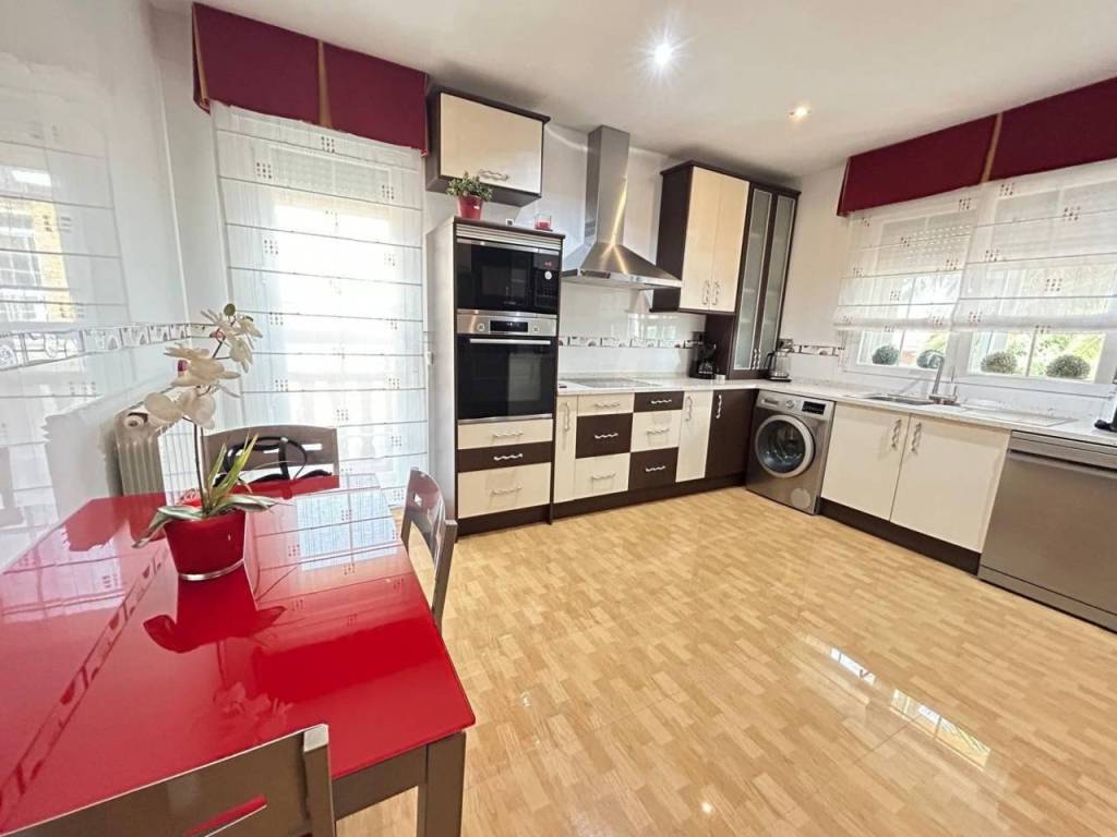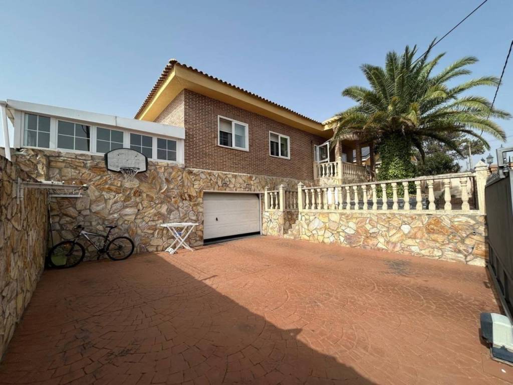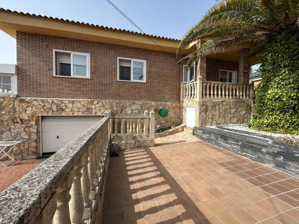 Planta alta: Encontramos salón con Chimenea, y salida a una terraza cerrada con doble ventanas y persianas, todo en un ESTADO EXCEPCIONAL, cocina de buen tamaño, tres dormitorios y dos baños con plato de ducha. La habitación principal en forma de suite. Planta Baja: salón, 2 dormitorios y baño con plato de ducha. Dispone de una salida al garaje, gran capacidad (dos coches grandes).Hay otra cocina en la zona del garaje, suplementaria a la de arriba.