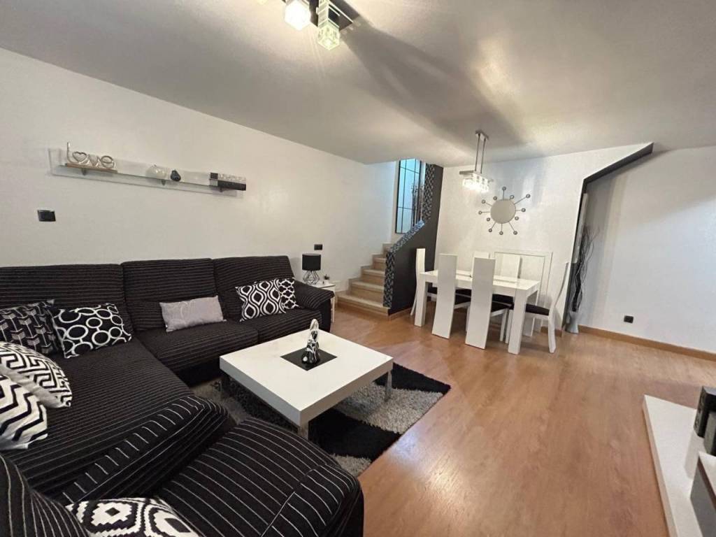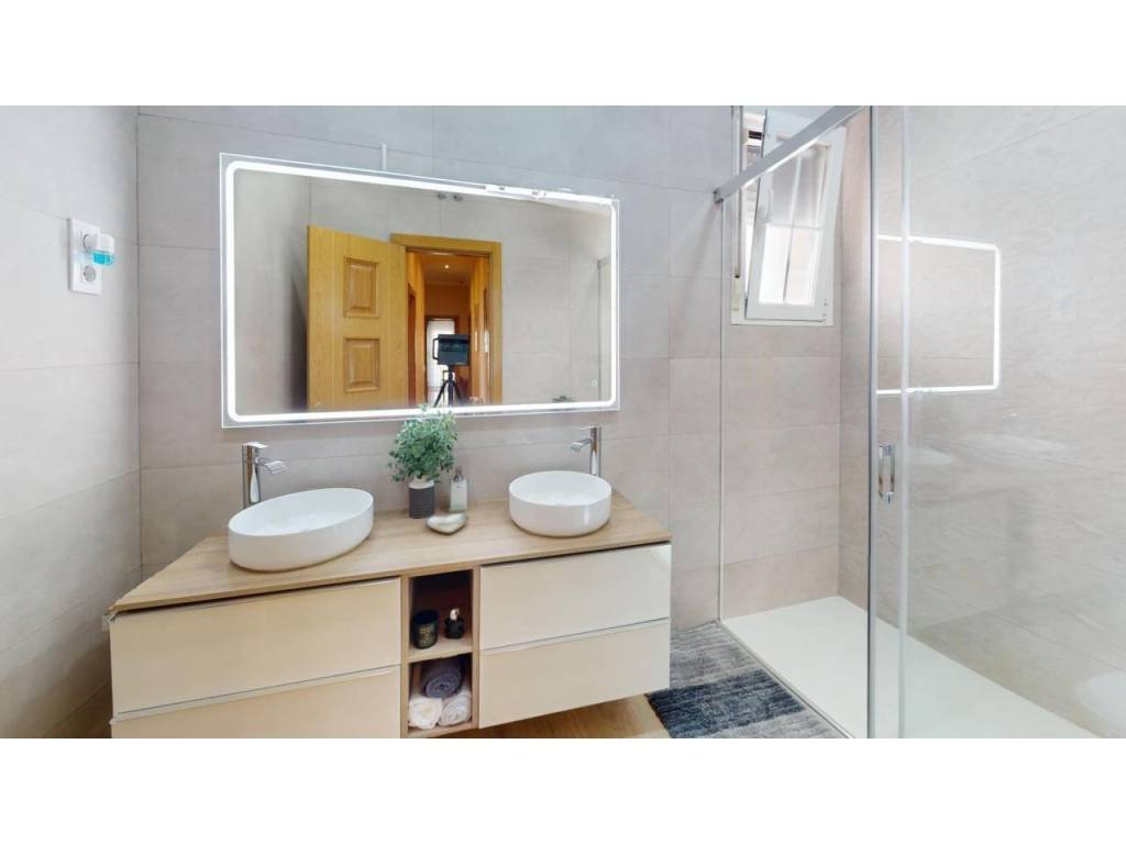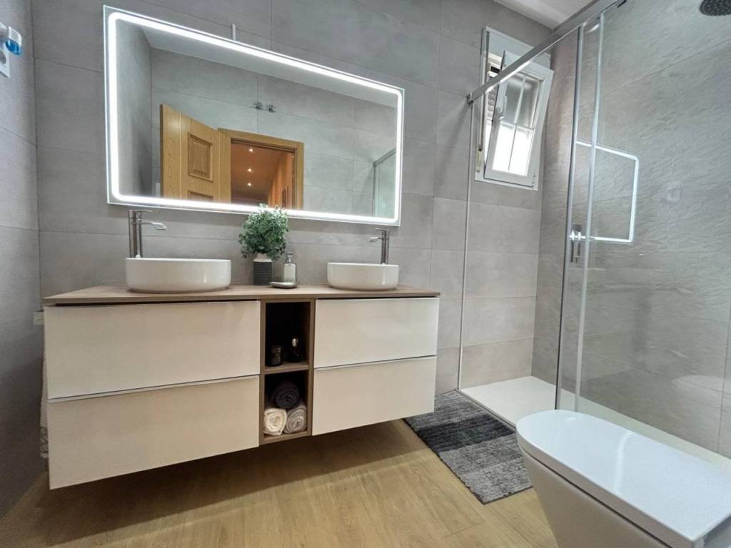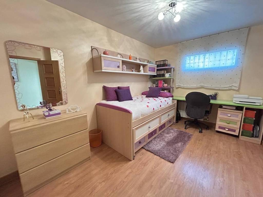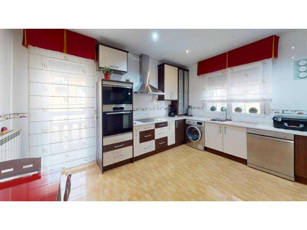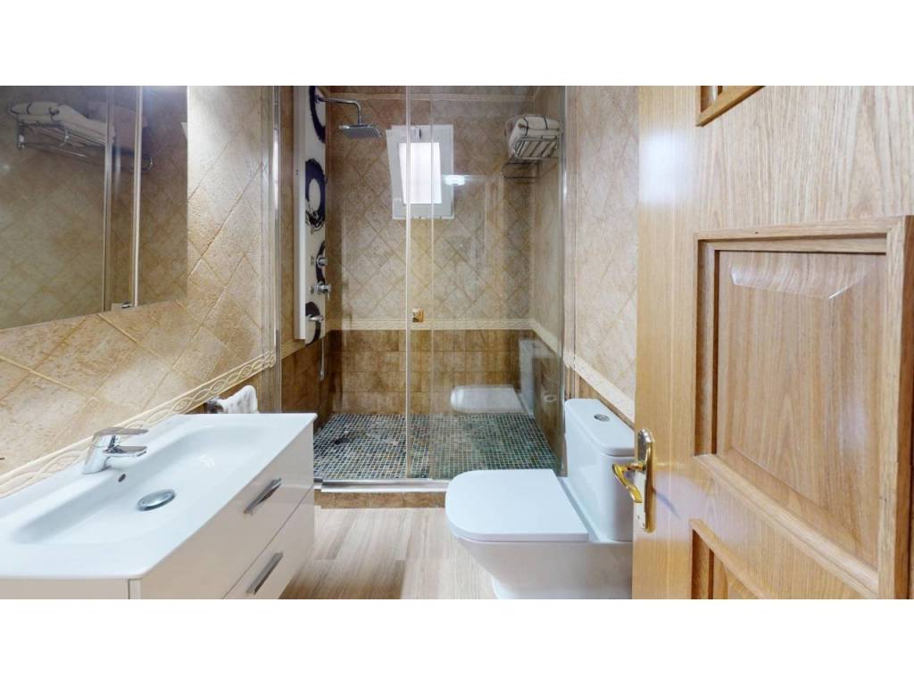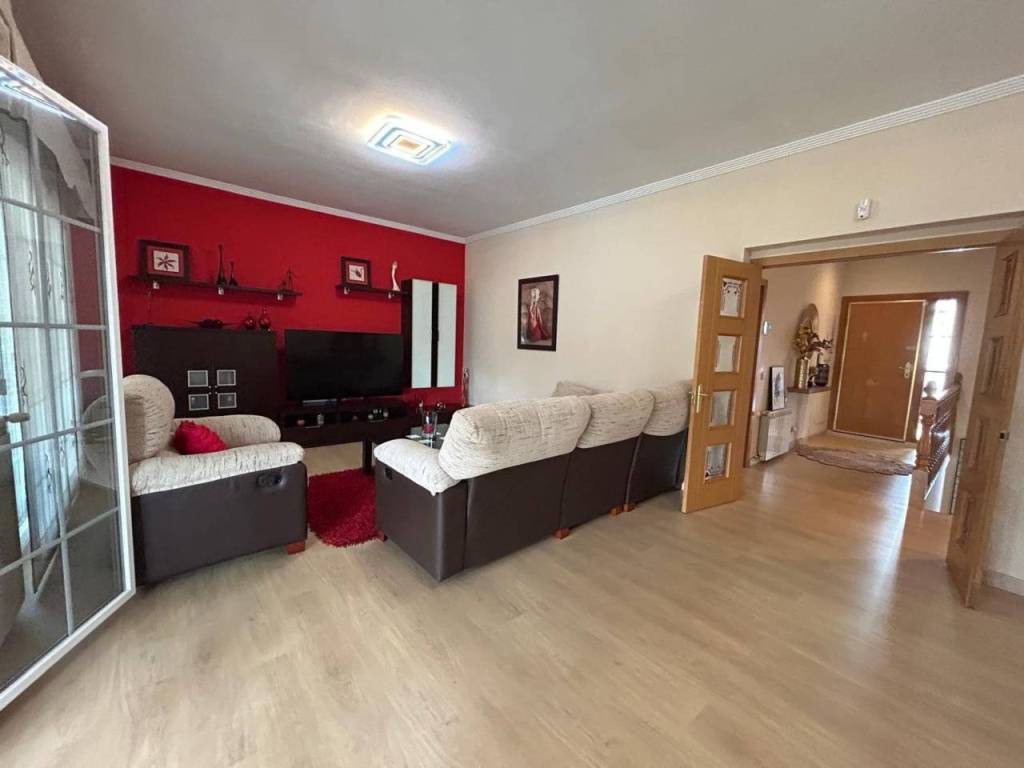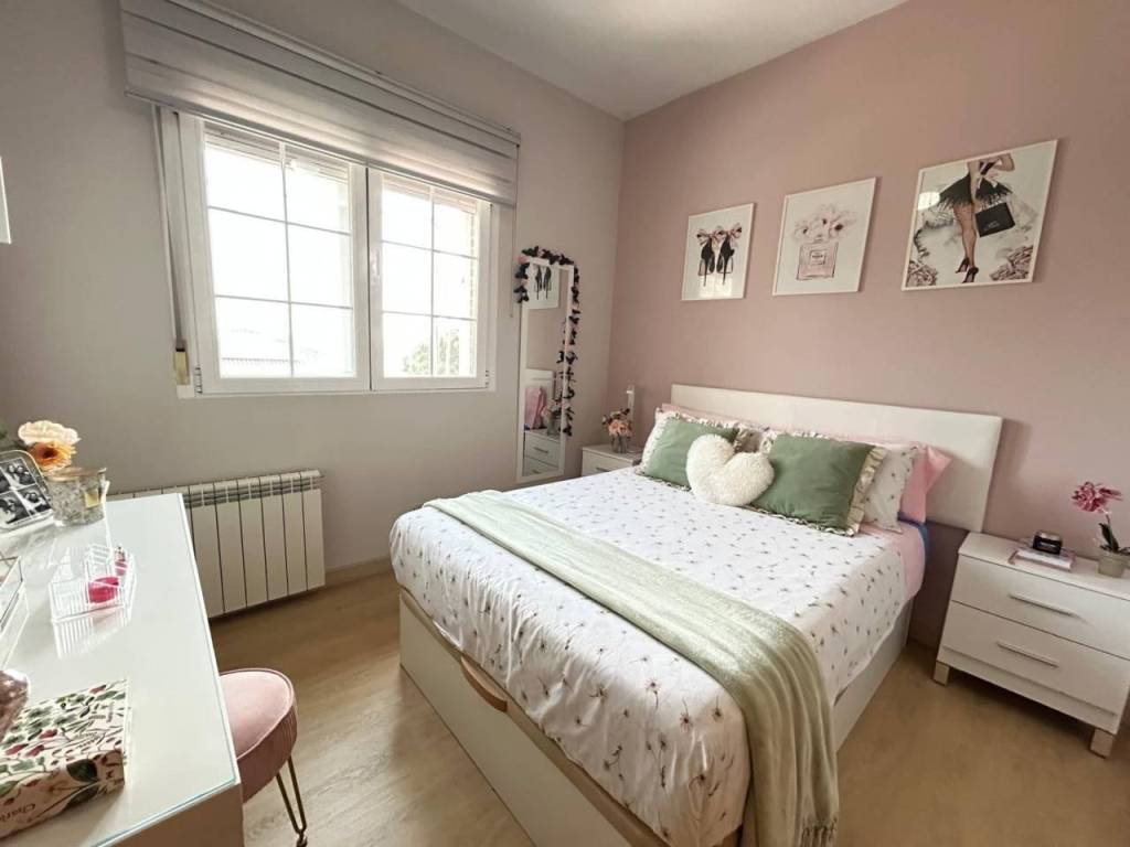 Planta alta: Encontramos salón con Chimenea, y salida a una terraza cerrada con doble ventanas y persianas, todo en un ESTADO EXCEPCIONAL, cocina de buen tamaño, tres dormitorios y dos baños con plato de ducha. La habitación principal en forma de suite. Planta Baja: salón, 2 dormitorios y baño con plato de ducha. Dispone de una salida al garaje, gran capacidad (dos coches grandes).Hay otra cocina en la zona del garaje, suplementaria a la de arriba.