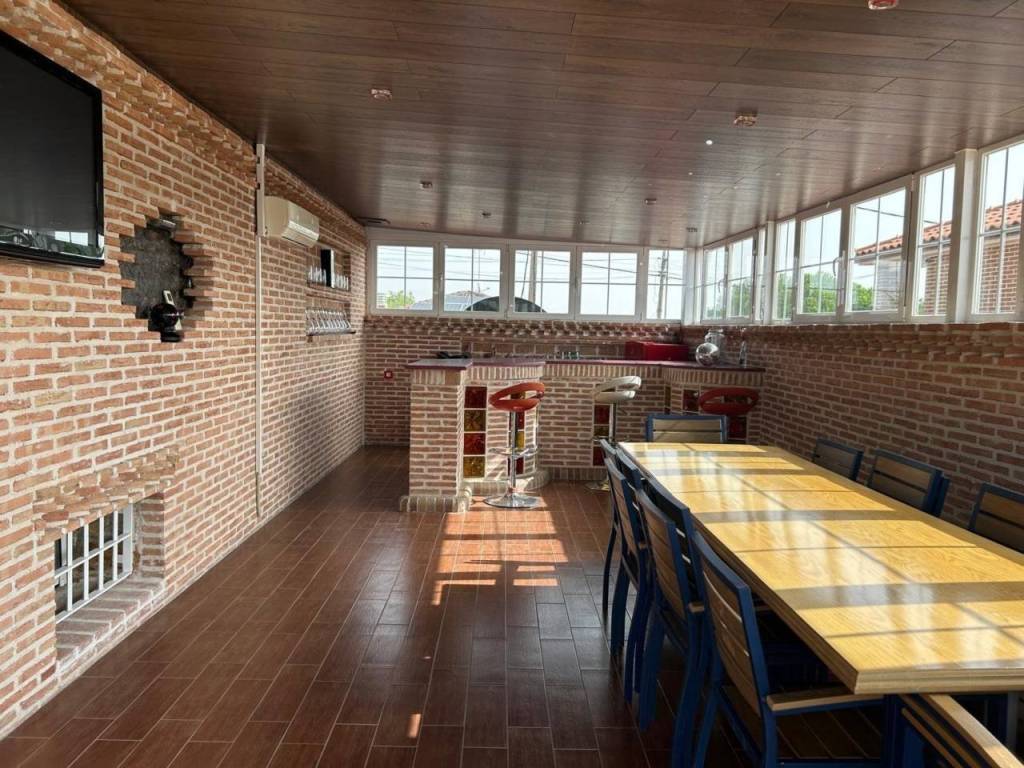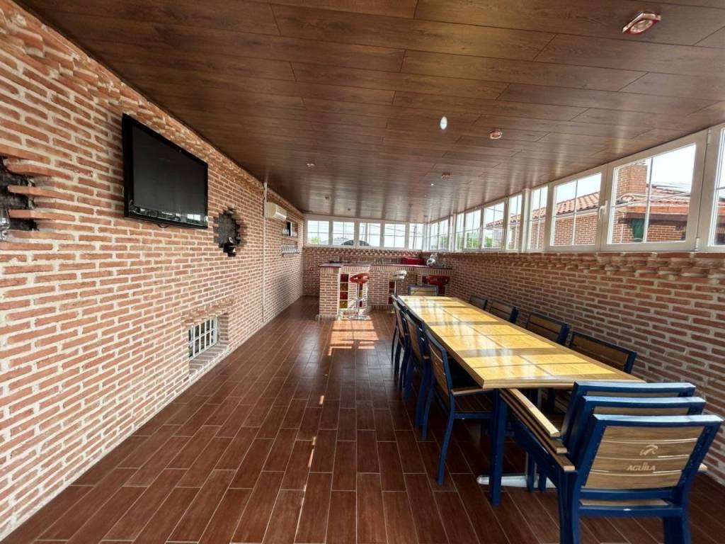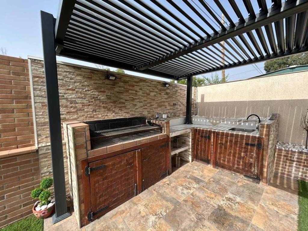 estupenda zona de BARBACOA con PERGOLA y un cerramiento exterior don poder disfrutar durante todo el año.