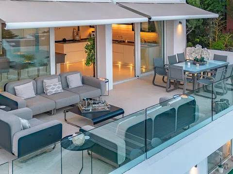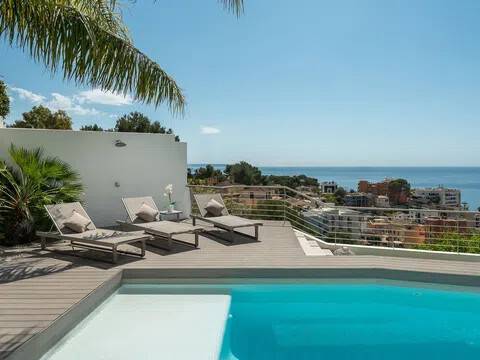 Esta encantadora villa familiar se encuentra en la popular localidad de Cala Mayor y ofrece unas vistas de ensueño al mar gracias a su posición elevada. En una superficie habitable de aprox. 306 m2 se distribuyen: 5 dormitorios, 3 baños, 1 aseo de invitados, salón-comedor, cocina amueblada, trastero y un garaje que actualmente se utiliza como gimnasio. Los ventanales del suelo al techo llenan las habitaciones de luz natural y ofrecen unas vistas panorámicas maravillosas. El amplio espacio y la distribución abierta crean un ambiente acogedor. 3 plazas de aparcamiento al aire libre para facilitar la llegada y la salida. La zona exterior cuenta con una refrescante piscina rodeada de terrazas, una zona chill out y un cuidado jardín. El lugar perfecto para pasar momentos inolvidables con amigos y familiares o simplemente para relajarse. El oasis de bienestar de Mallorca para toda la familia.