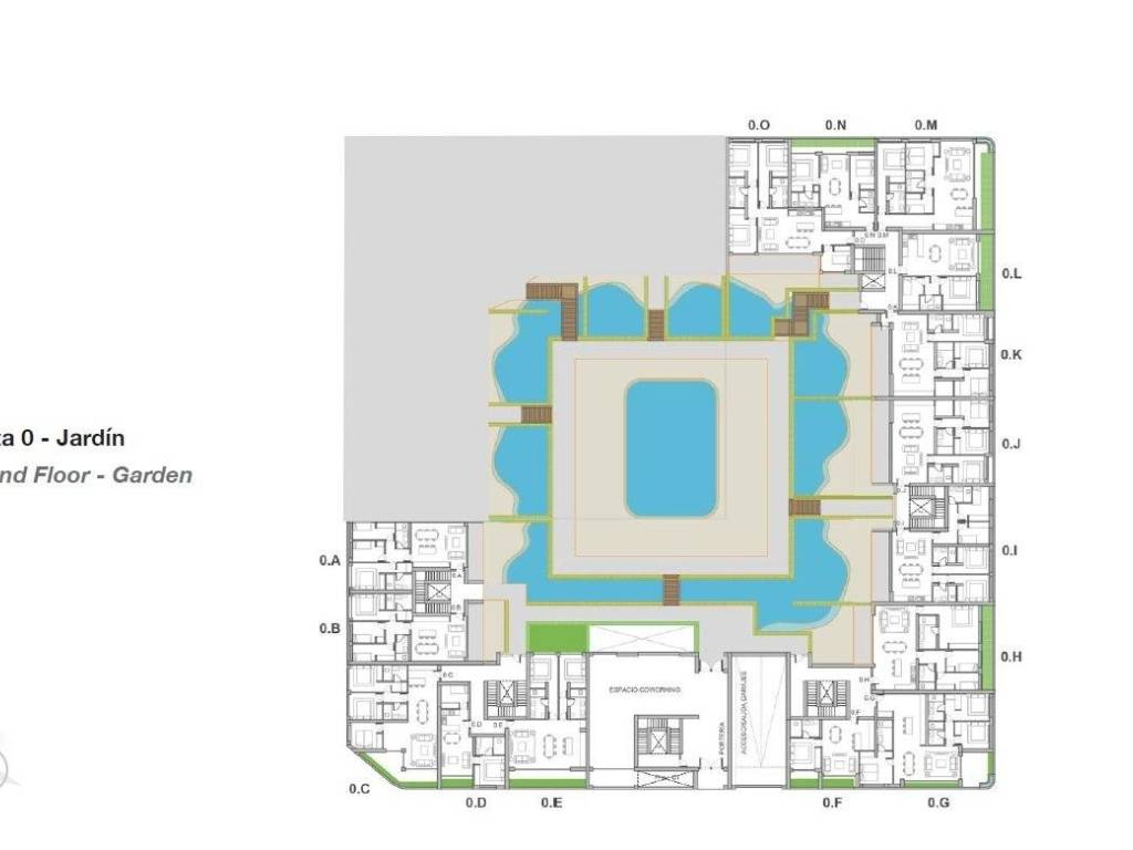 Apartamentos en planta baja con jardines privados y algunas unidades con piscinas estilo playa